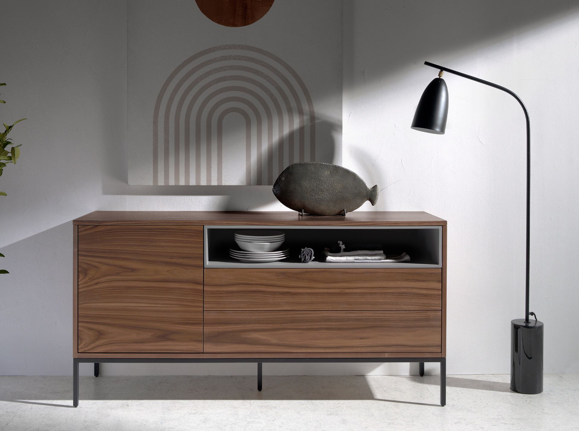 Lámpara de pie mármol negro y acero negro