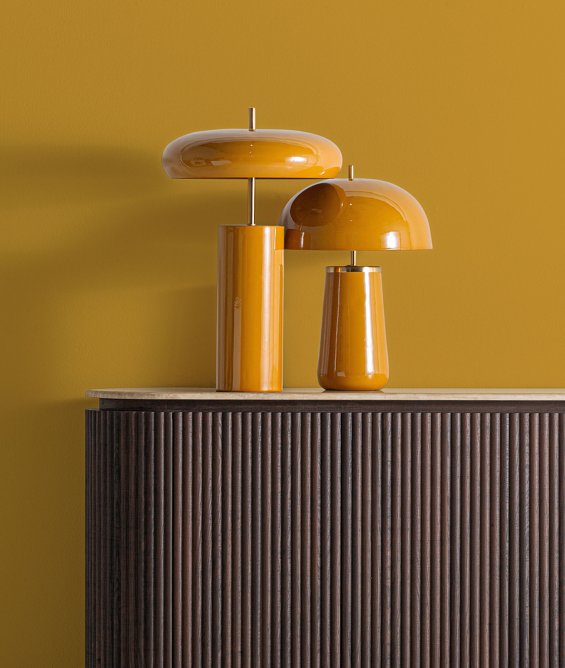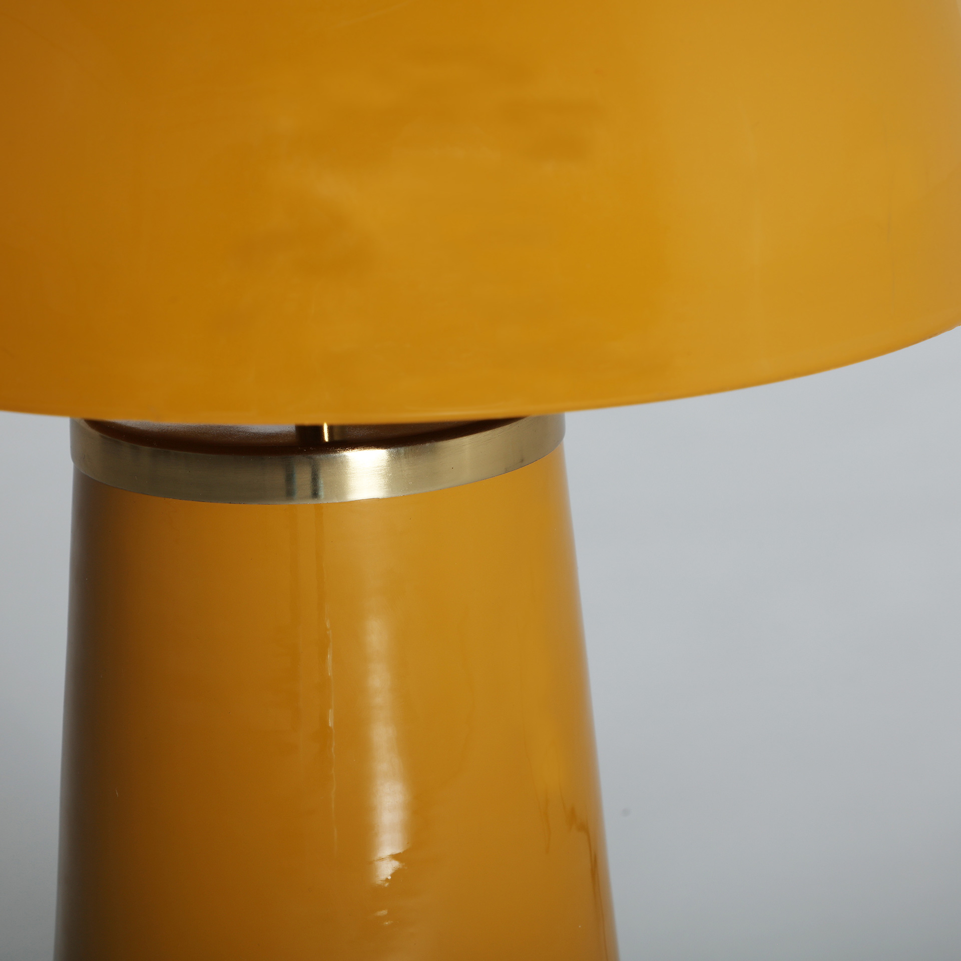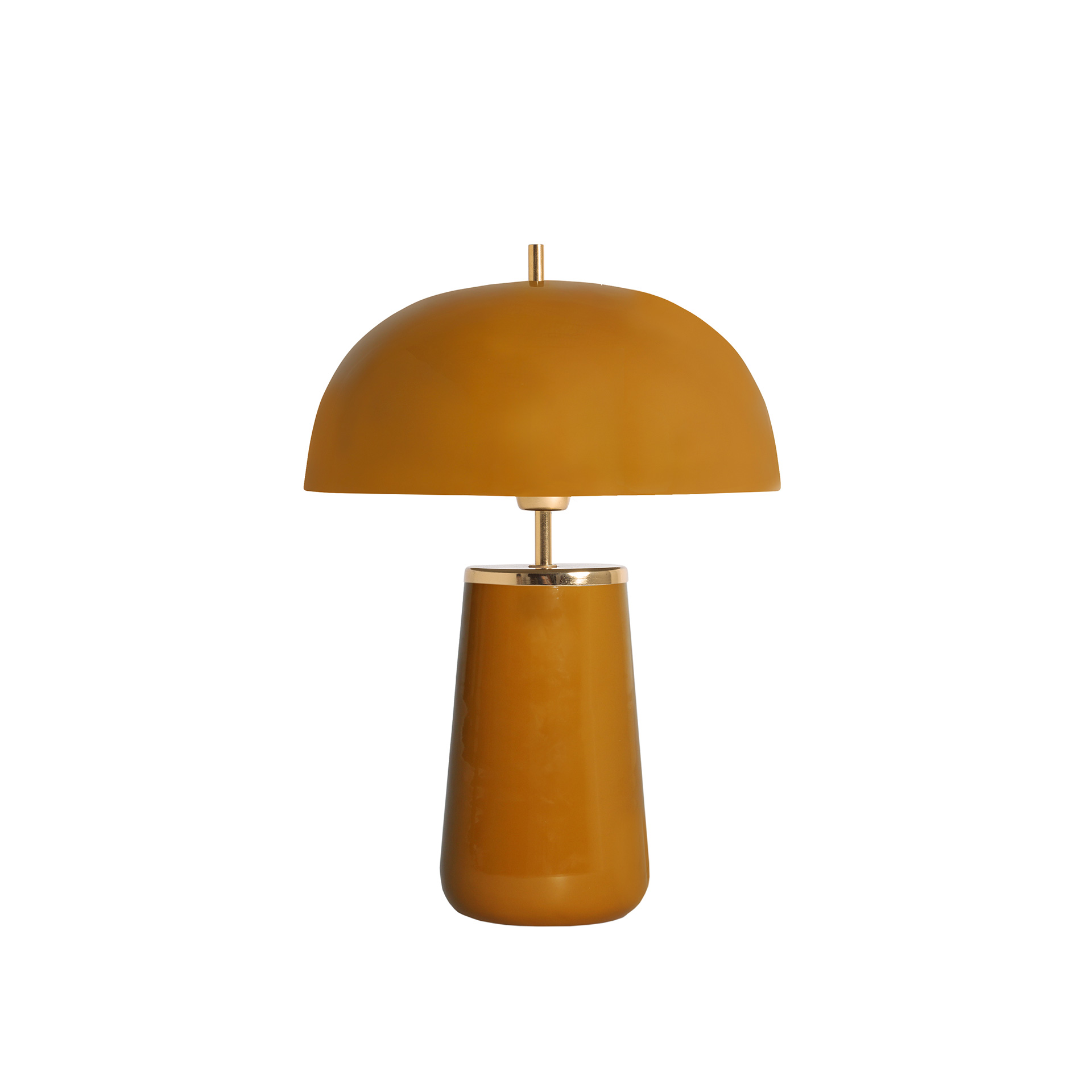 Lámpara de sobremesa Arosa de estilo moderno, fabricado en hierro en color ocre con acabado brillo en color oro. Producto desmontable.