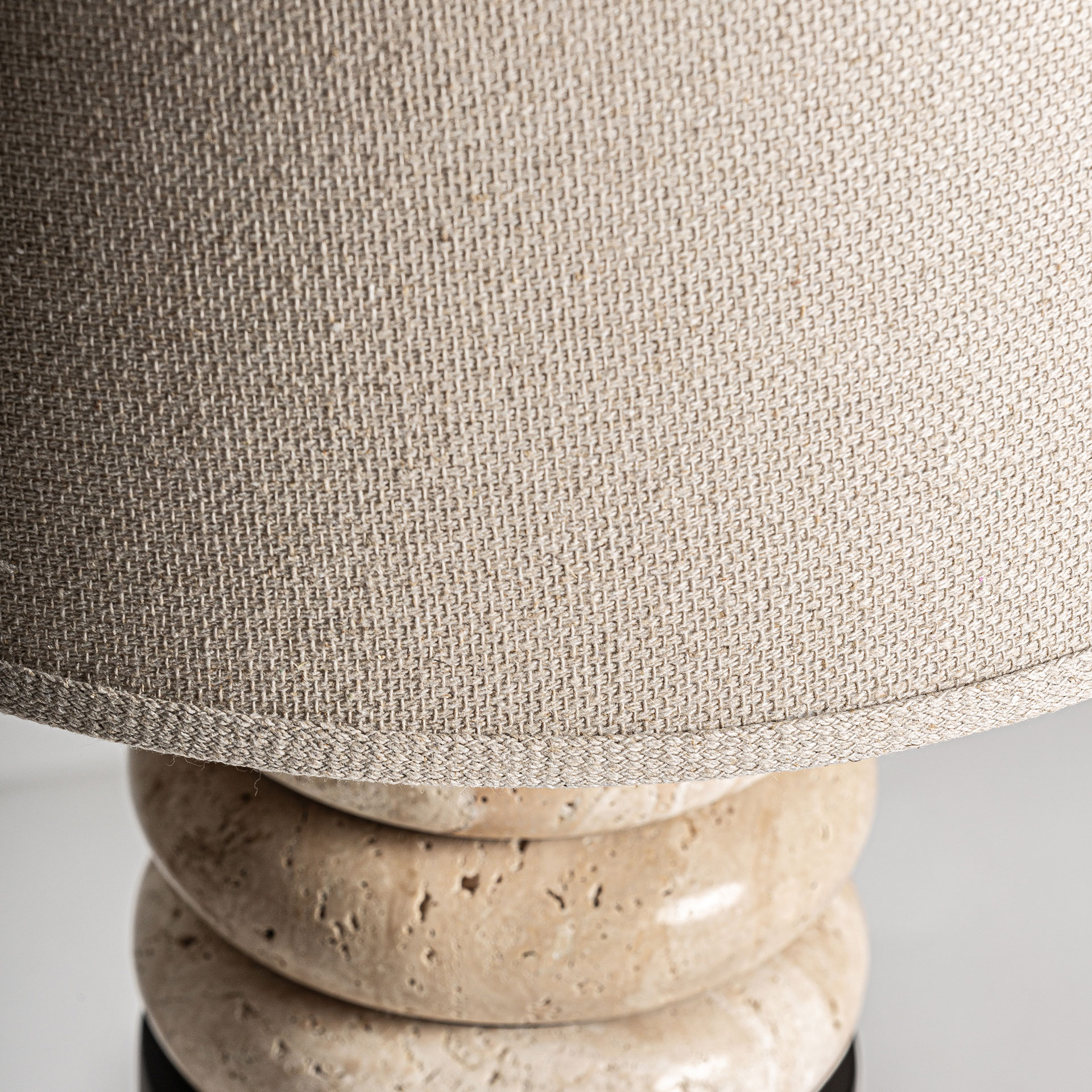 Lámpara de sobremesa Axis de estilo art deco fabricado en mármol en color negro combinado con hierro en color marrón y lino. Producto desmontable.