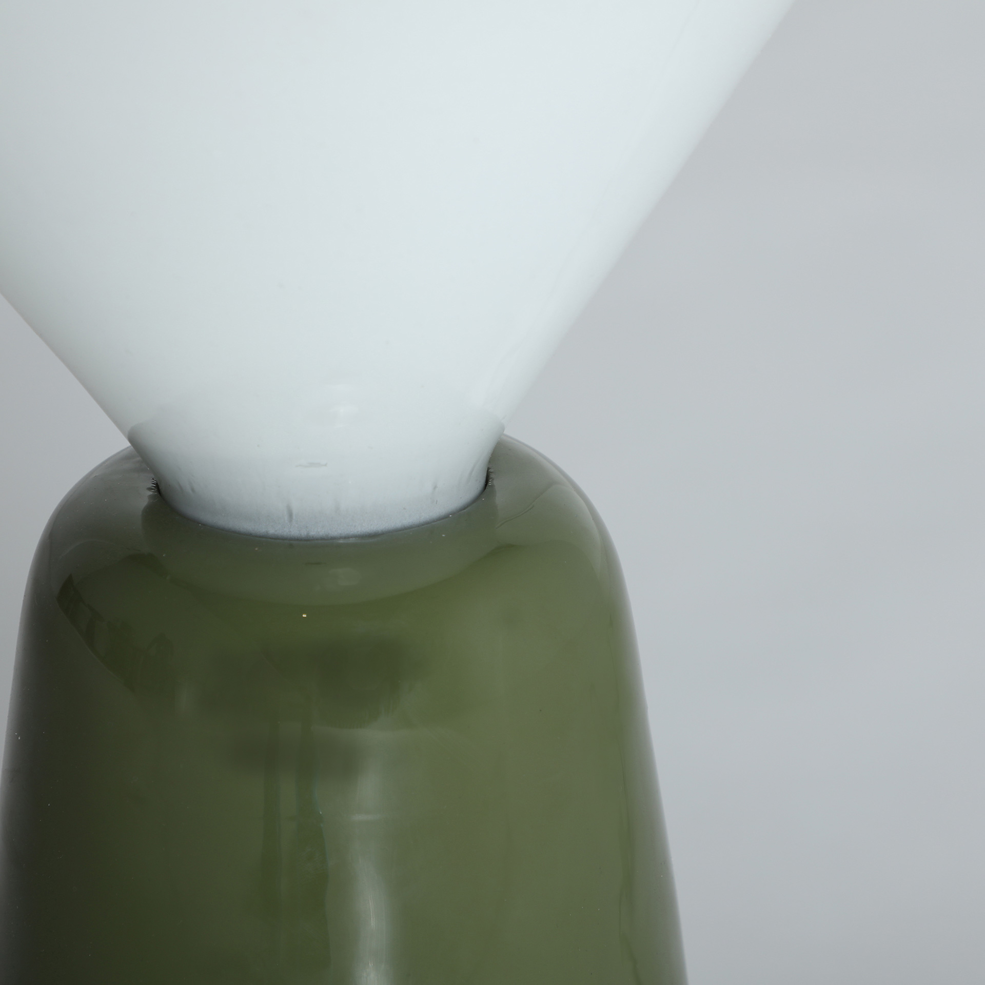 Lámpara de sobremesa Montalcino de estilo moderno, fabricado en hierro en color verde, combinado con vidrio en color blanco. Producto desmontable.