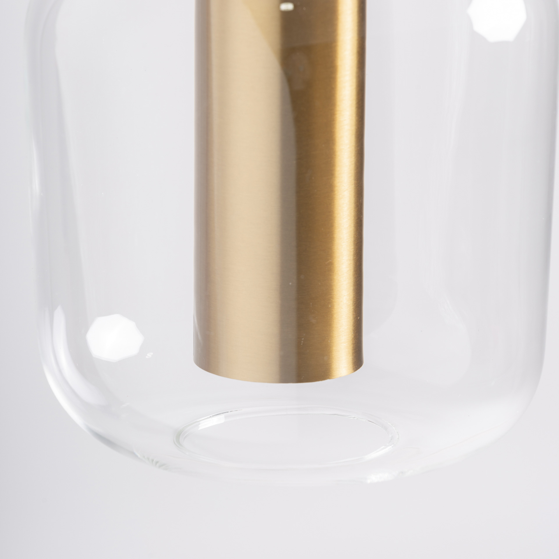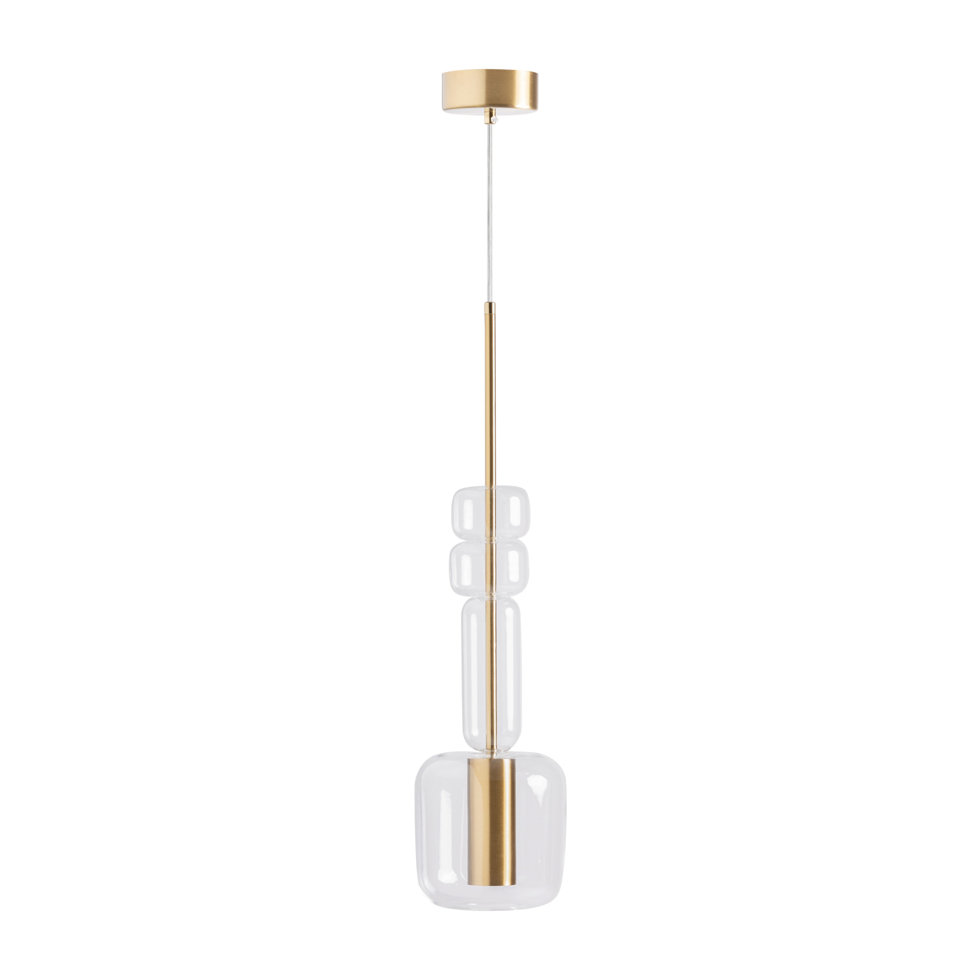 Lámpara de colgar Zisk de estilo art deco fabricado en cristal en color transparente combinado con acero en color oro con acabado viejo. Producto desmontable.