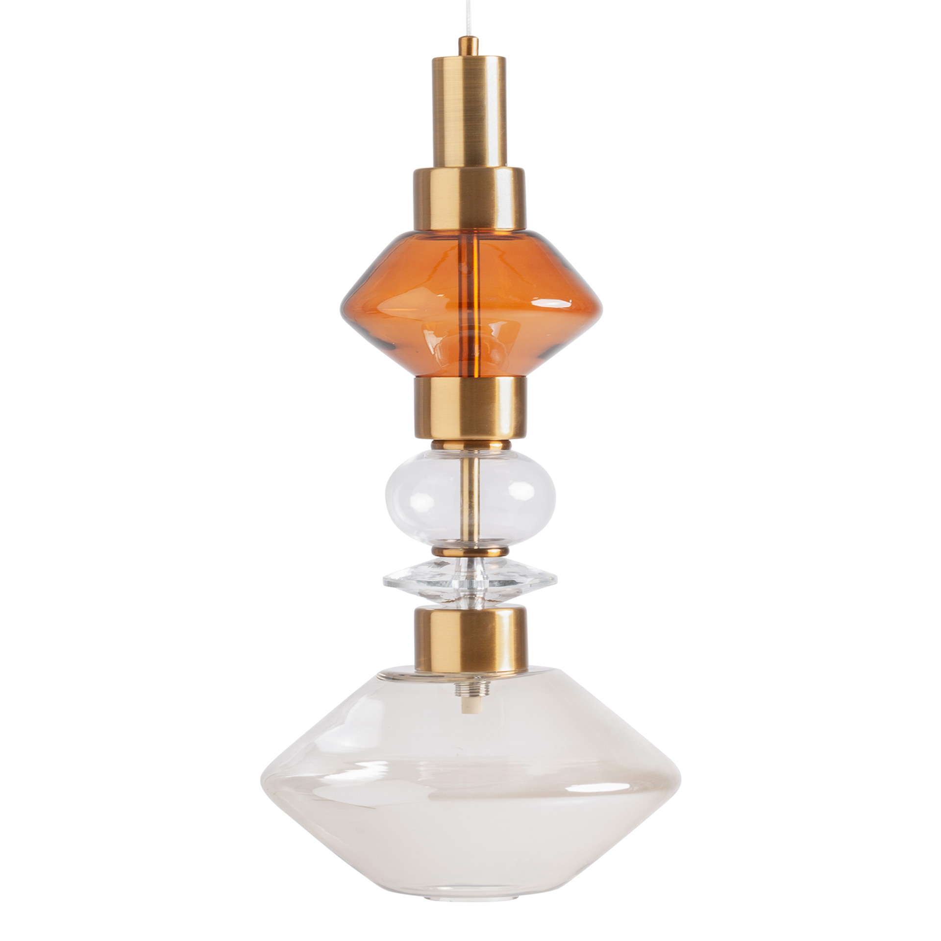 Lámpara de colgar Anna de estilo art deco fabricado en cristal en color tonos neutros con acabado ahumado combinado con acero en color cobre. Producto desmontable.