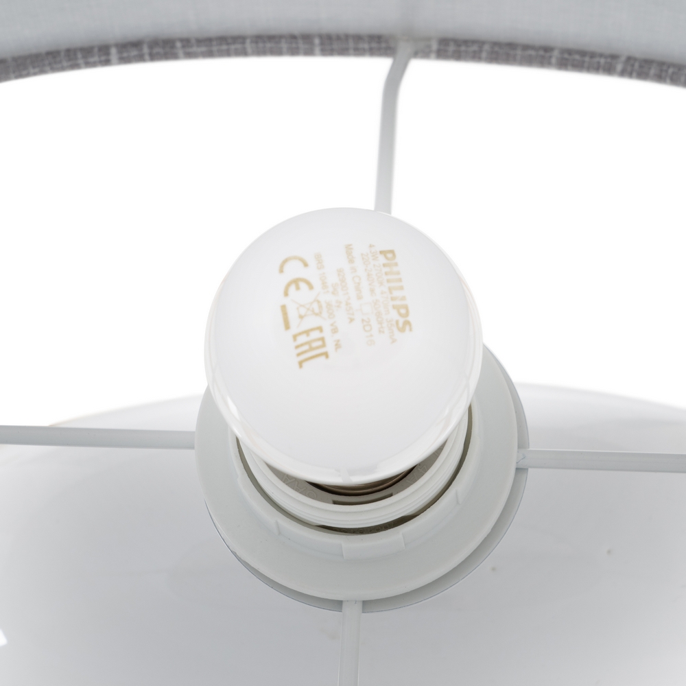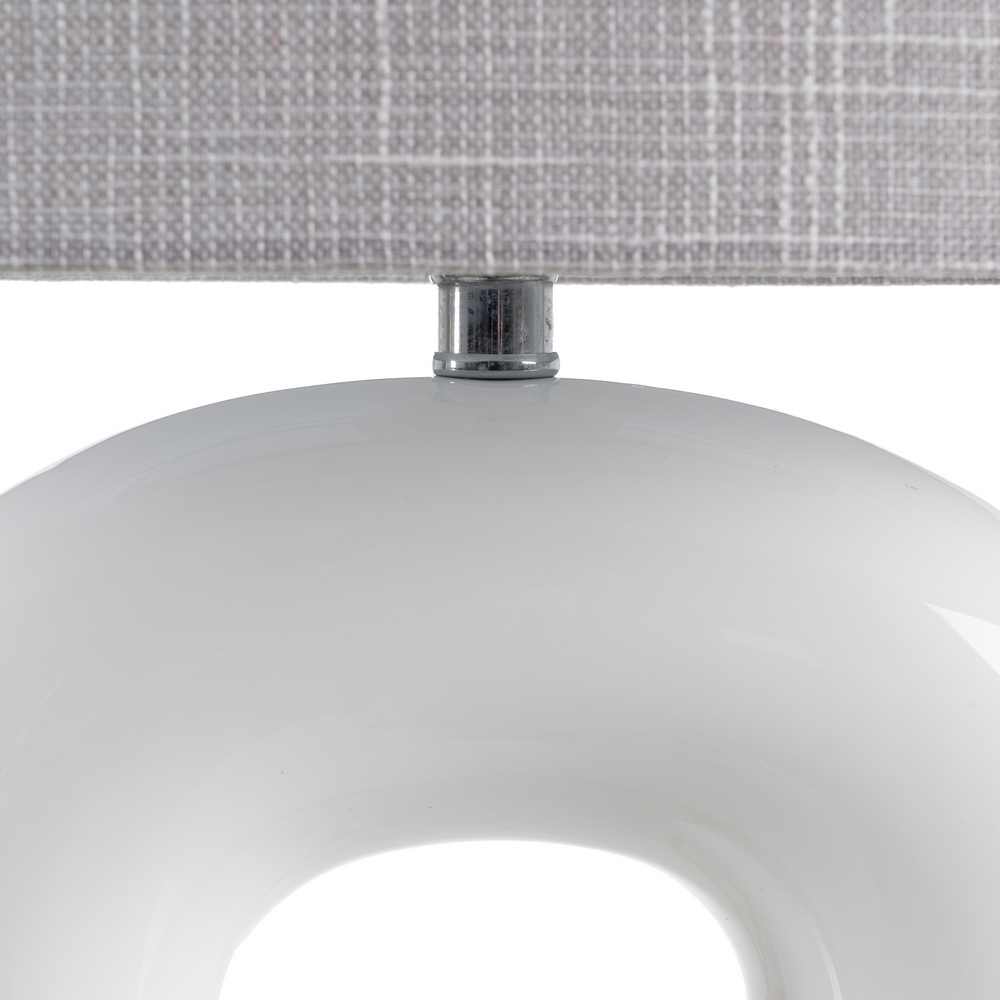 LÁMPARA MESA BLANCO CERÁMICA ILUMINACIÓN 35 X 20 X 50 CM Material base: Cerámica. Material tulipa: Lino Medida base: 24x08x25cm. Medida tulipa: 35x20x22(altura) cm. Voltaje: 220-240v Casquillo: E 27 Bombilla: 1x60w máx (no incluida) Longitud del cable: 200cm. Color blanco.