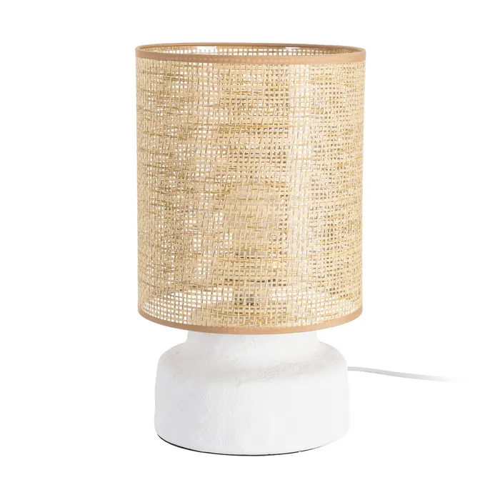 LÁMPARA MESA CERÁMICA ILUMINACIÓN 23 X 23 X 39,50 CM Base de cerámica, medidas 20x20x12cm. Pantalla de fibra de papel y PVC, medidas 23x23x26cm. Voltios: 220-240V. Casquillo: E27. Bombilla: 1*40W (no incluida). Longitud cable: 145cm.
