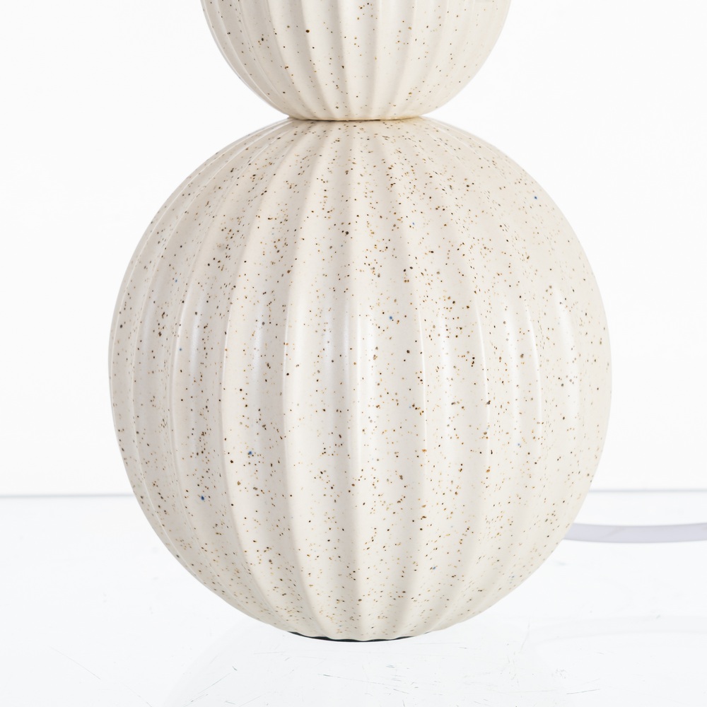 LÁMPARA MESA CERÁMICA ILUMINACIÓN 35 X 35 X 41,50 CM Base de cerámica, medidas 13,5×13,5x27cm. Pantalla de tejido y PVC, medidas 35x35x16cm. Voltios: 220-240V. Casquillo: E27. Bombilla: 1*40W (no incluida). Longitud cable: 130cm.