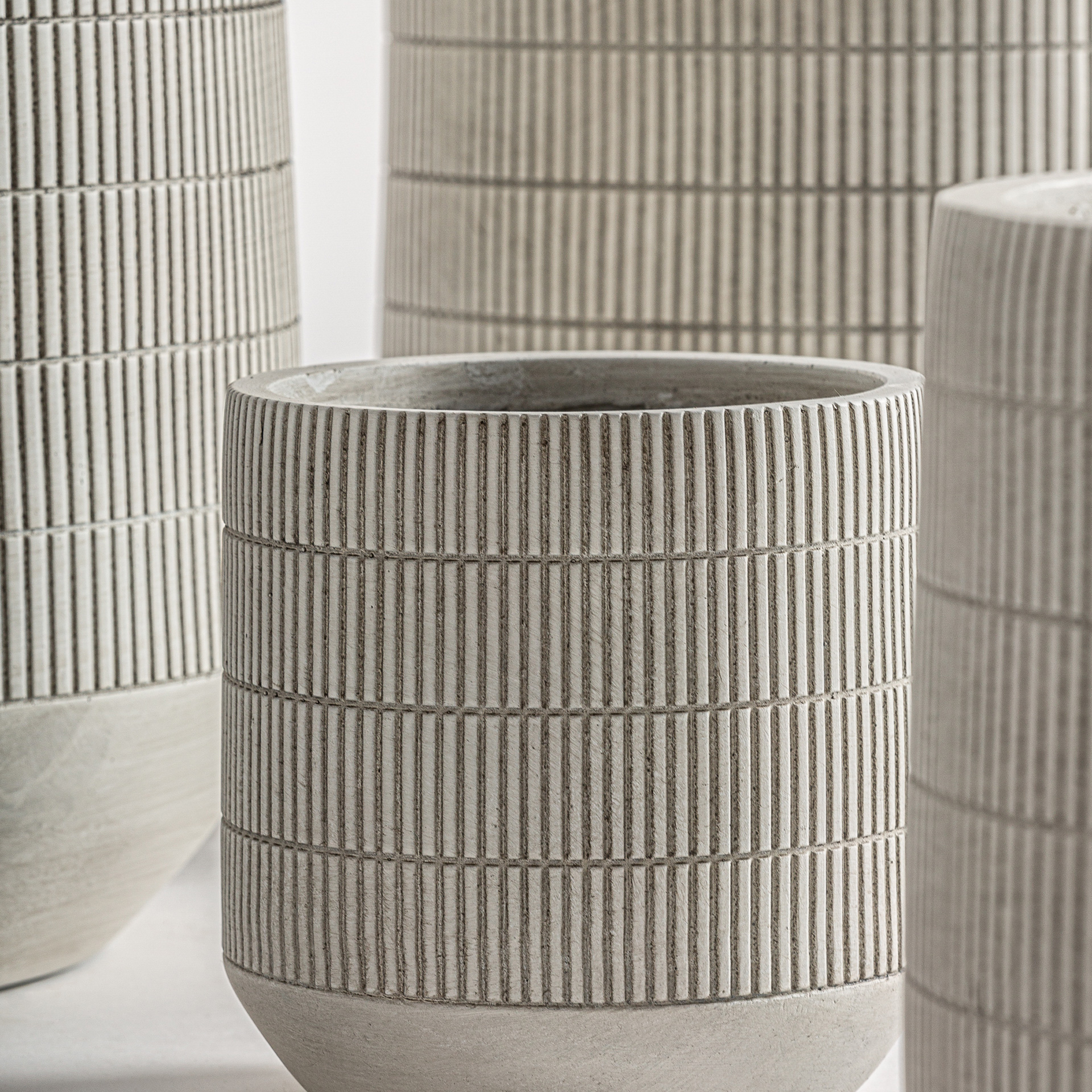 Macetero j/4 Aris de estilo contemporáneo, fabricado en cerámica en color gris. Producto apilable.