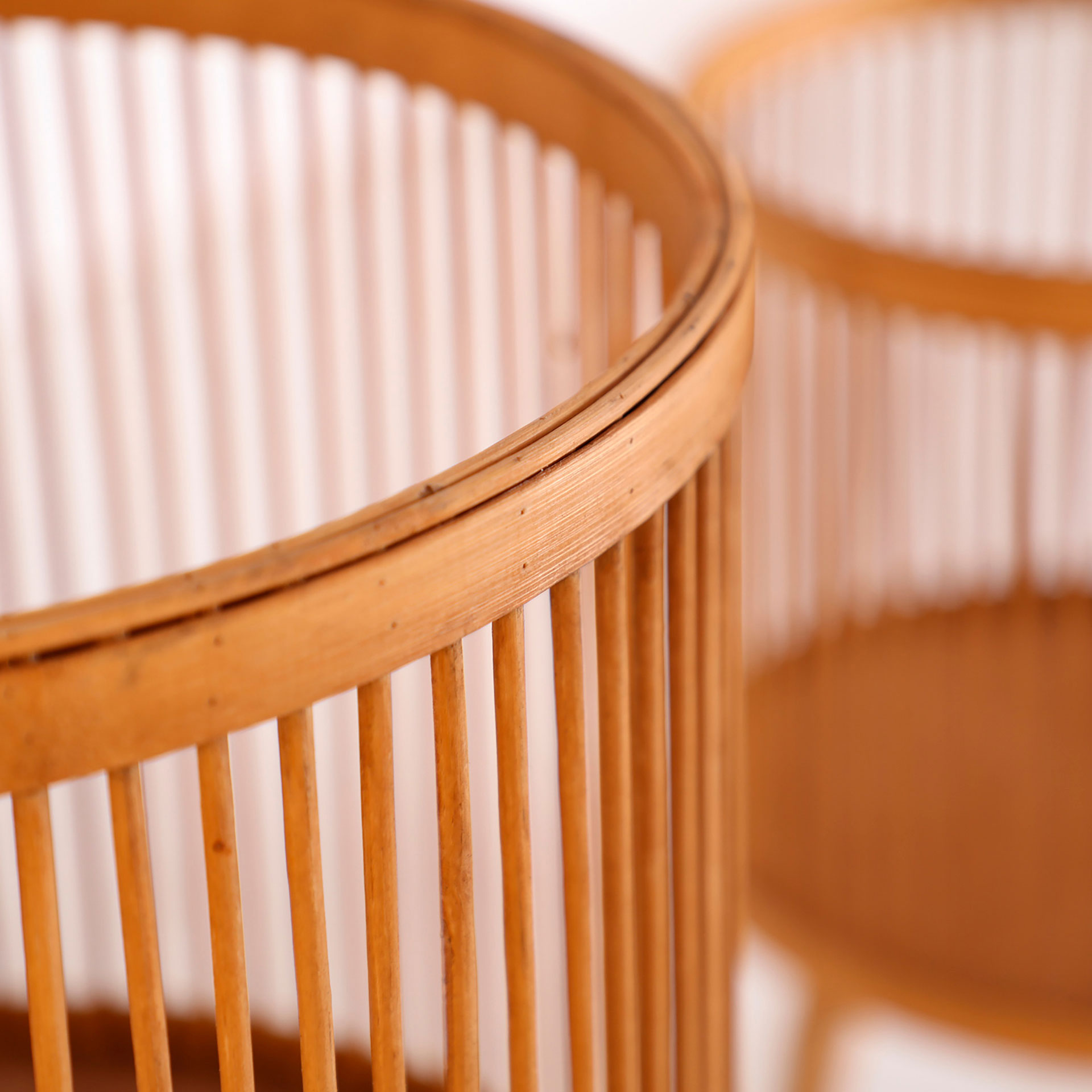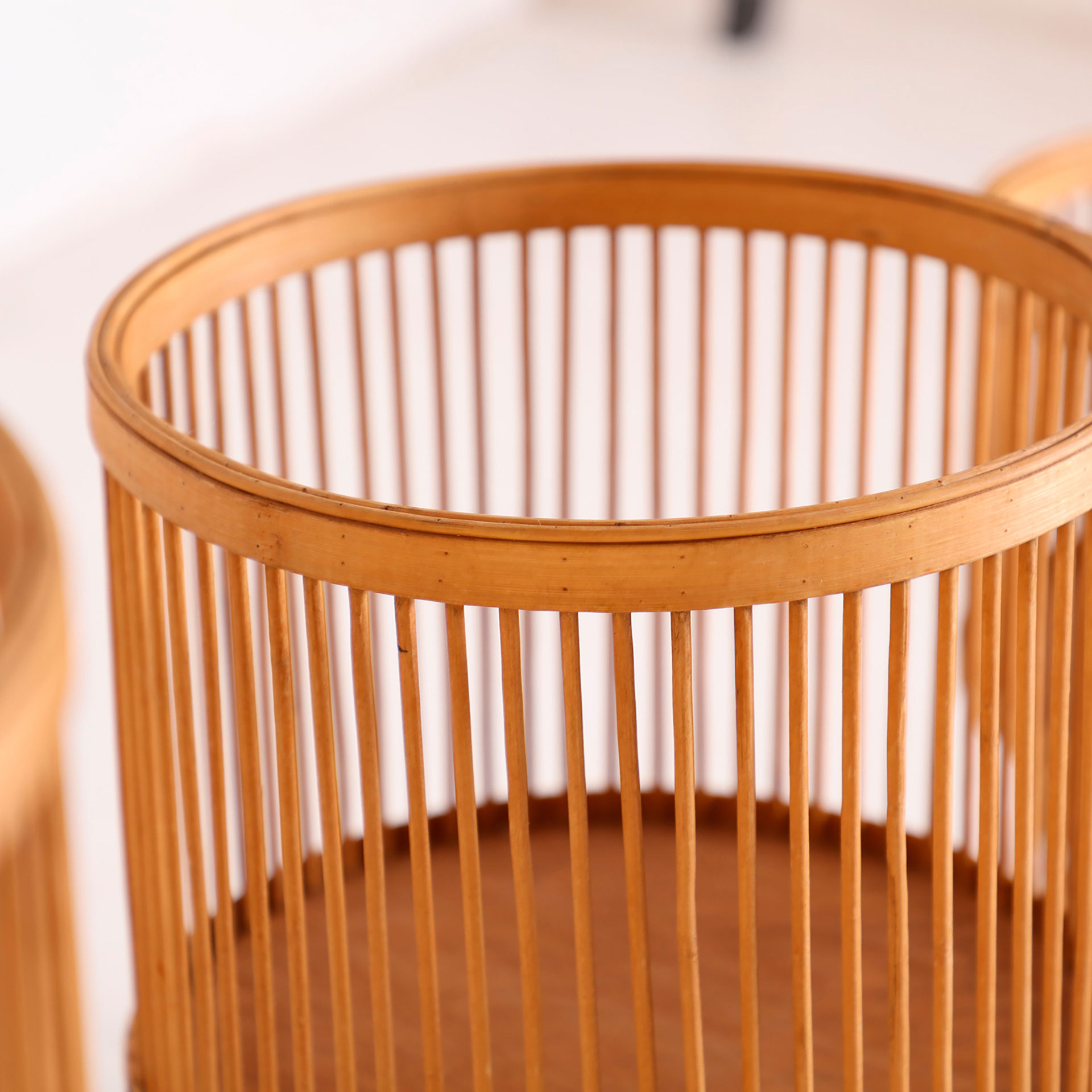 Macetero j/3 Arteaga de estilo boho, fabricado en bambú en color marrón. Producto desmontable.