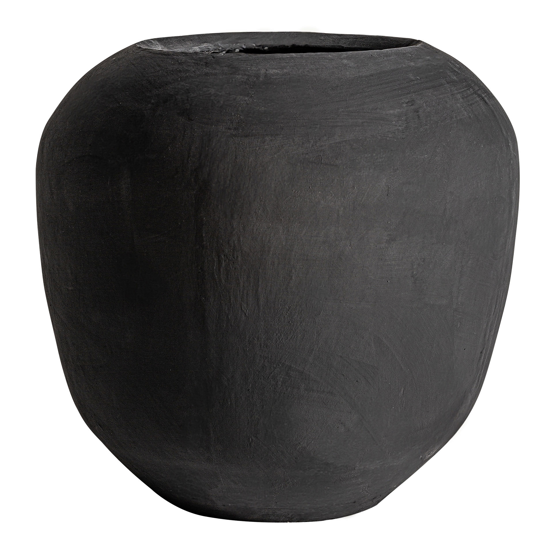 Macetero Gloria de estilo contemporáneo fabricado en cemento en color negro combinado con fibra de vidrio.