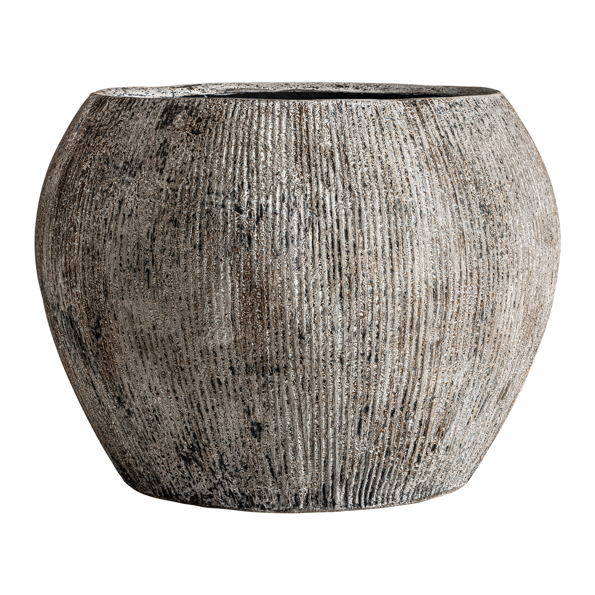 Macetero Miyuka de estilo contemporáneo fabricado en hormigón armado en color gris con acabado envejecido.