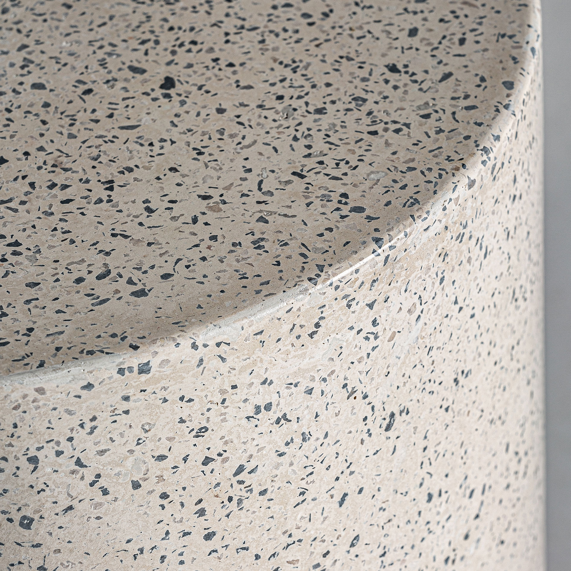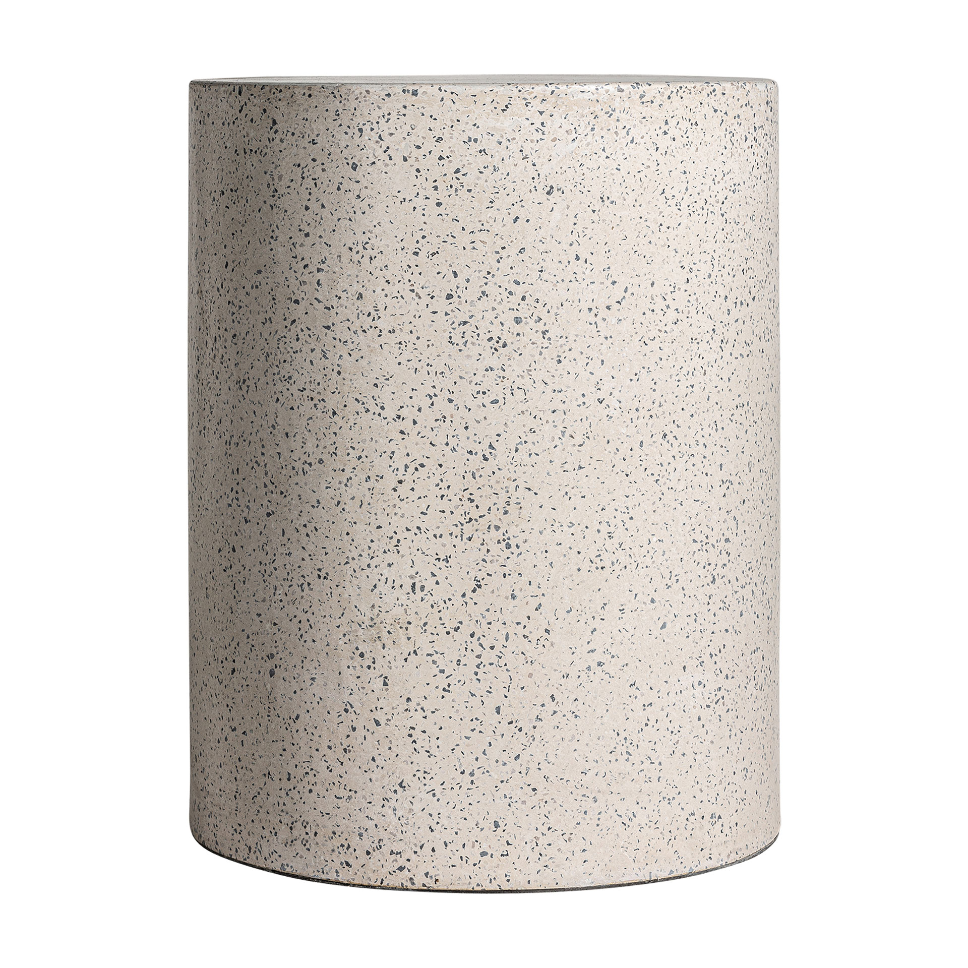 Mesa auxiliar albenga de estilo contemporáneo fabricado en terrazo en color blanco.