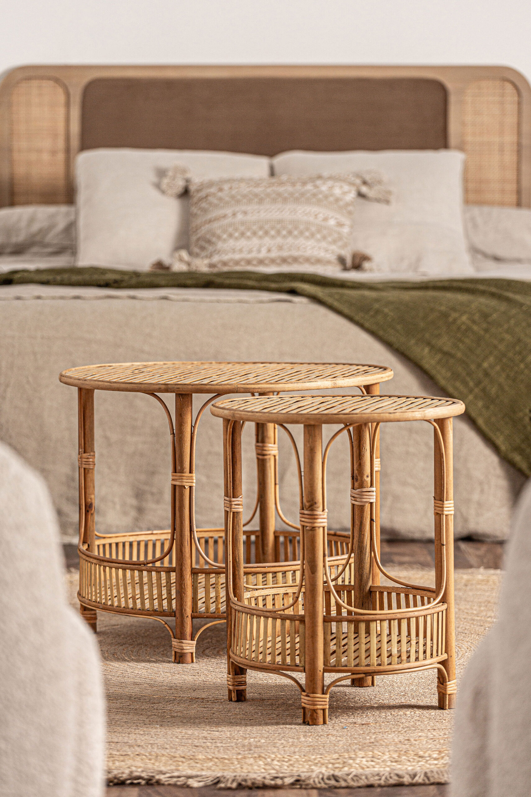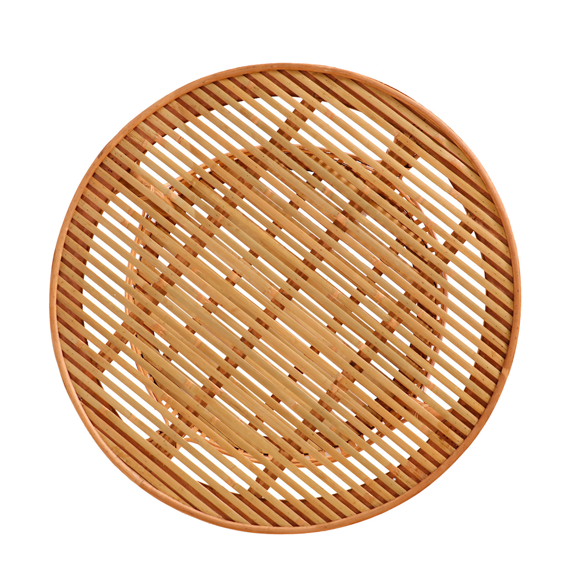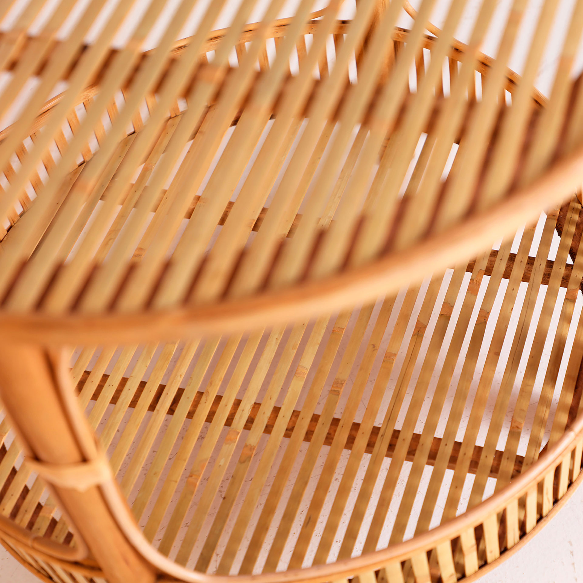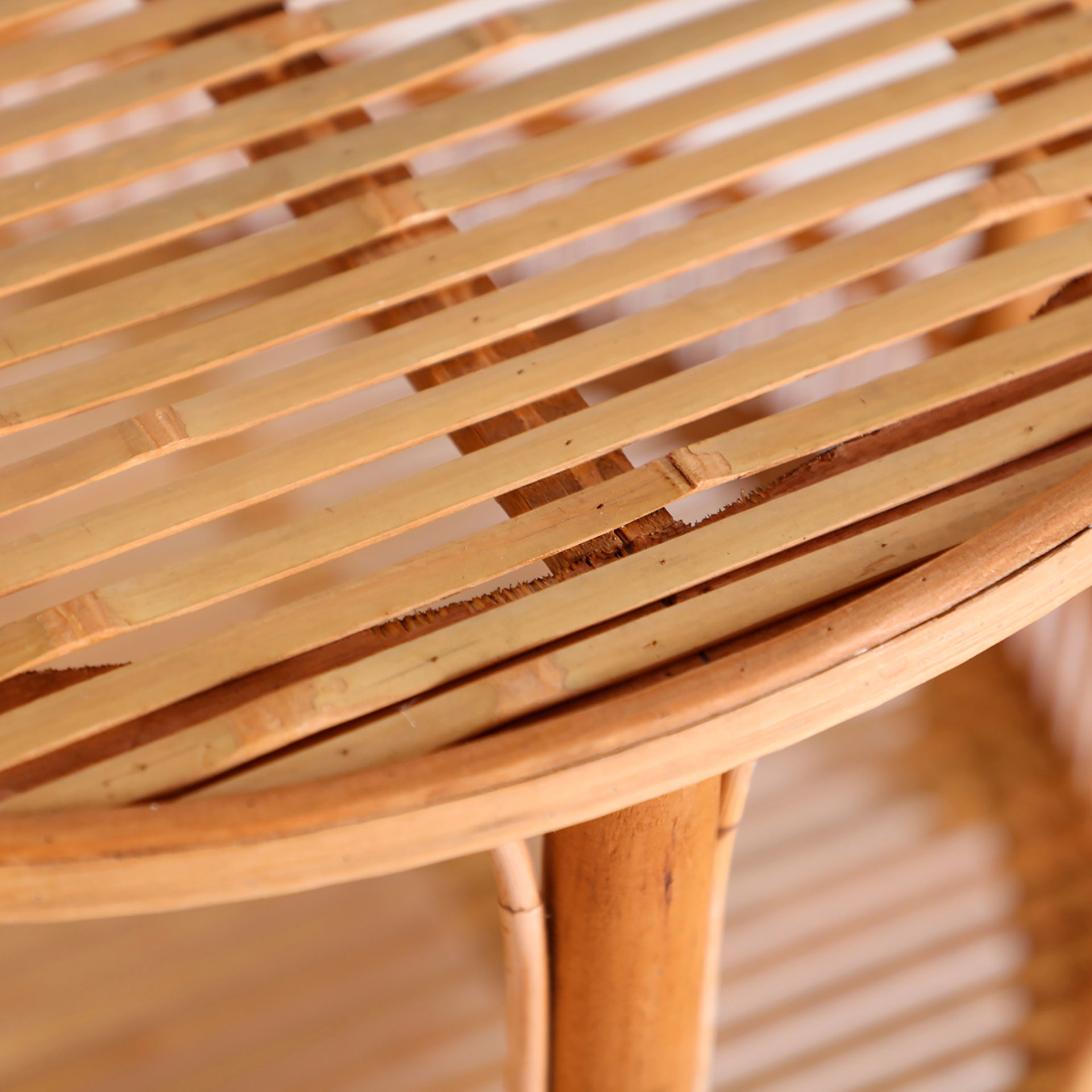 Mesa auxiliar redonda arteaga de estilo boho, fabricado en bambú en color marrón.