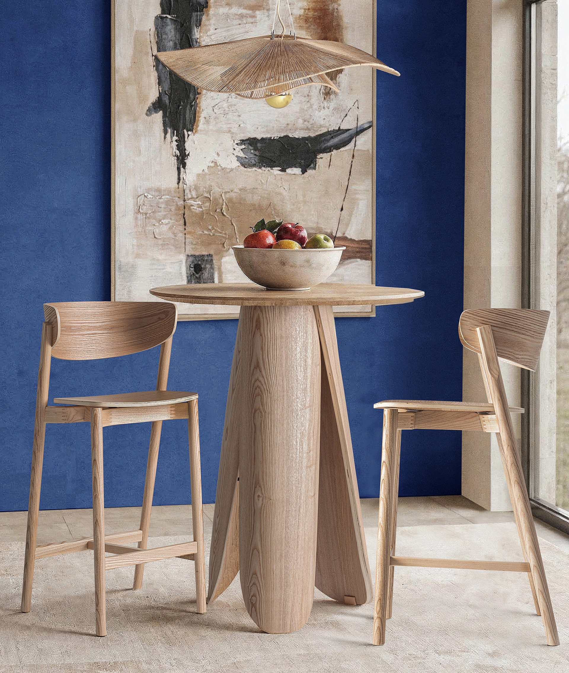 La Mesa bar Wieler es una pieza que reinterpreta el estilo nórdico desde una mirada contemporánea y arquitectónica. Fabricada en madera DM en tono marrón claro, combinada con chapa de fresno, destaca por su base escultórica y su equilibrio visual. Una mesa desmontable, pensada para proyectos profesionales que buscan calidez, diseño atemporal y una presencia serena en espacios residenciales o contract.