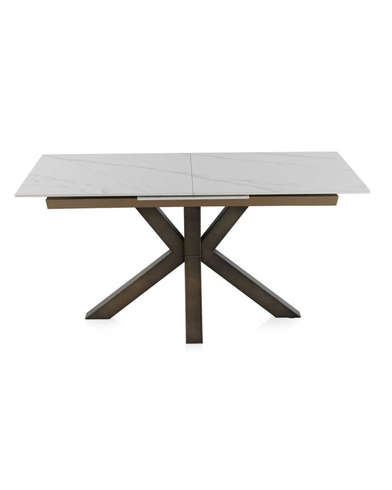 MESA BLANCA CERAMICA EXTENSIBLE 160/210X90 CM PIE METAL COLOR CO