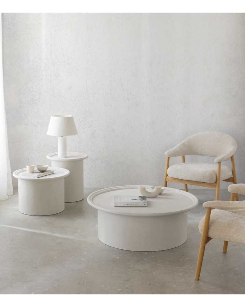 CARACTERÍSTICAS: MESA CENTRO 100 DIÁMETRO DE COLOR CEMENTO BLANCO DE POLIRESINA