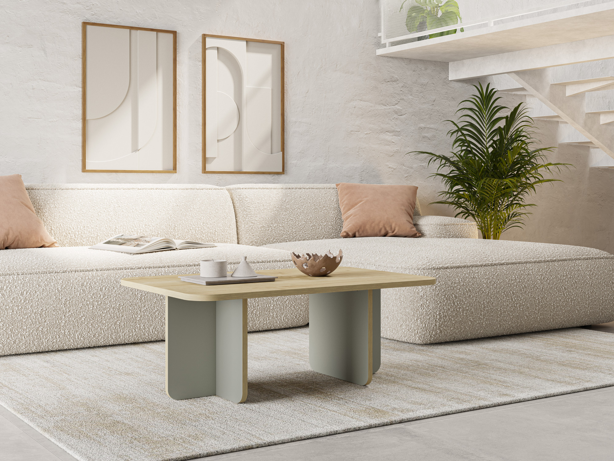 MESA CENTRO HILLARY 100CM RO/PATA VERDE C.ROBLE