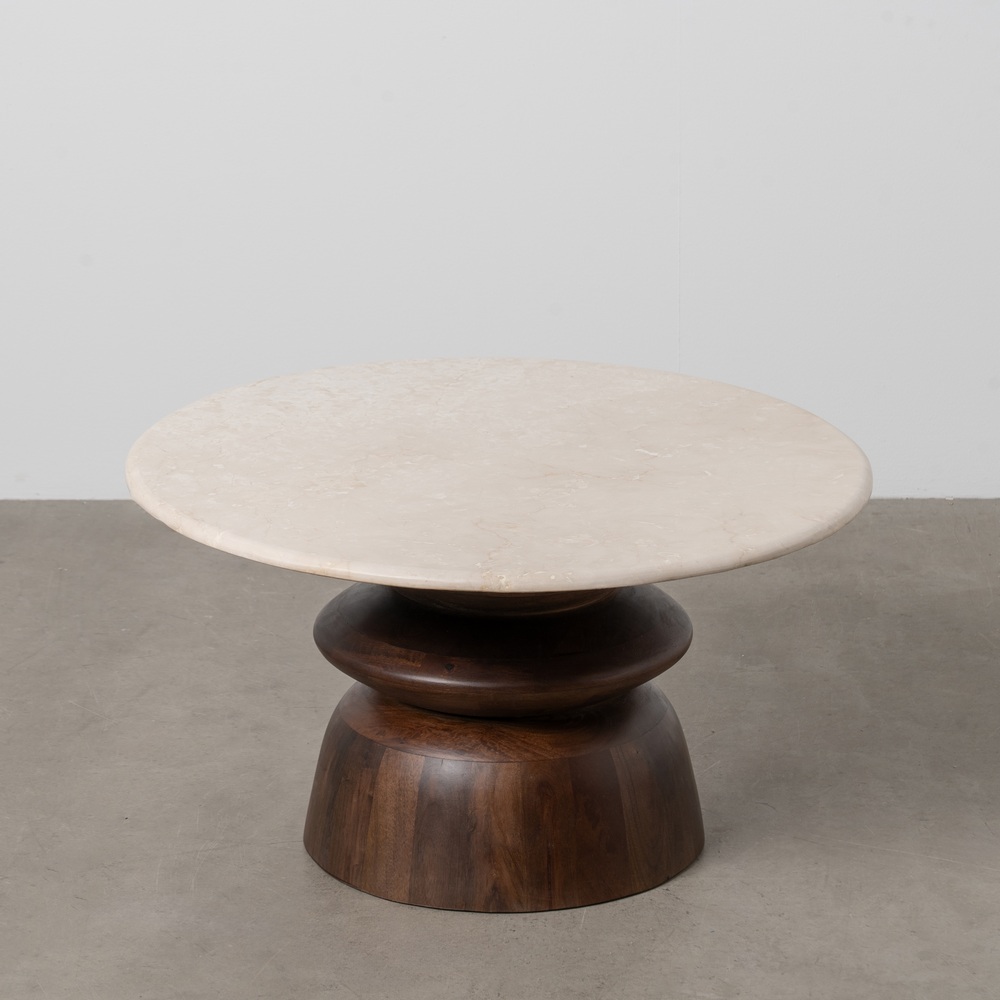 MESA CENTRO MÁRMOL/MADERA SALÓN 75 X 75 X 39 CM Material: madera de mango, mármol. El mármol es un material natural con variaciones en su aspecto.
