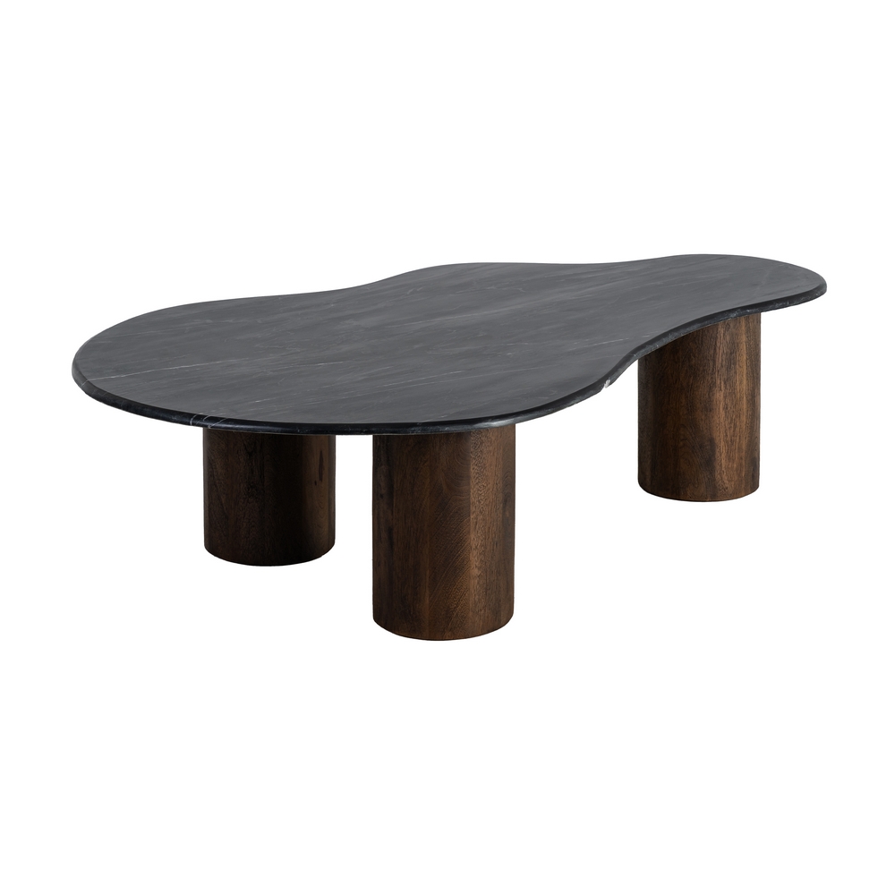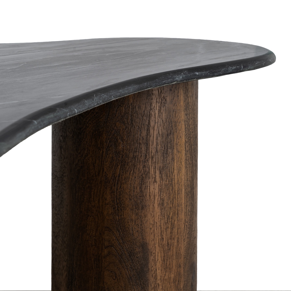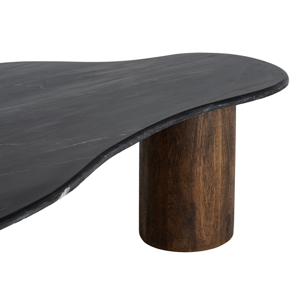MESA CENTRO NEGRO-MARRÓN MÁRMOL/MADERA 135 X 80 X 37 CM Material: madera de mango, mármol. Grosor mármol: 2cm. El mármol es un material natural con variaciones en su aspecto.