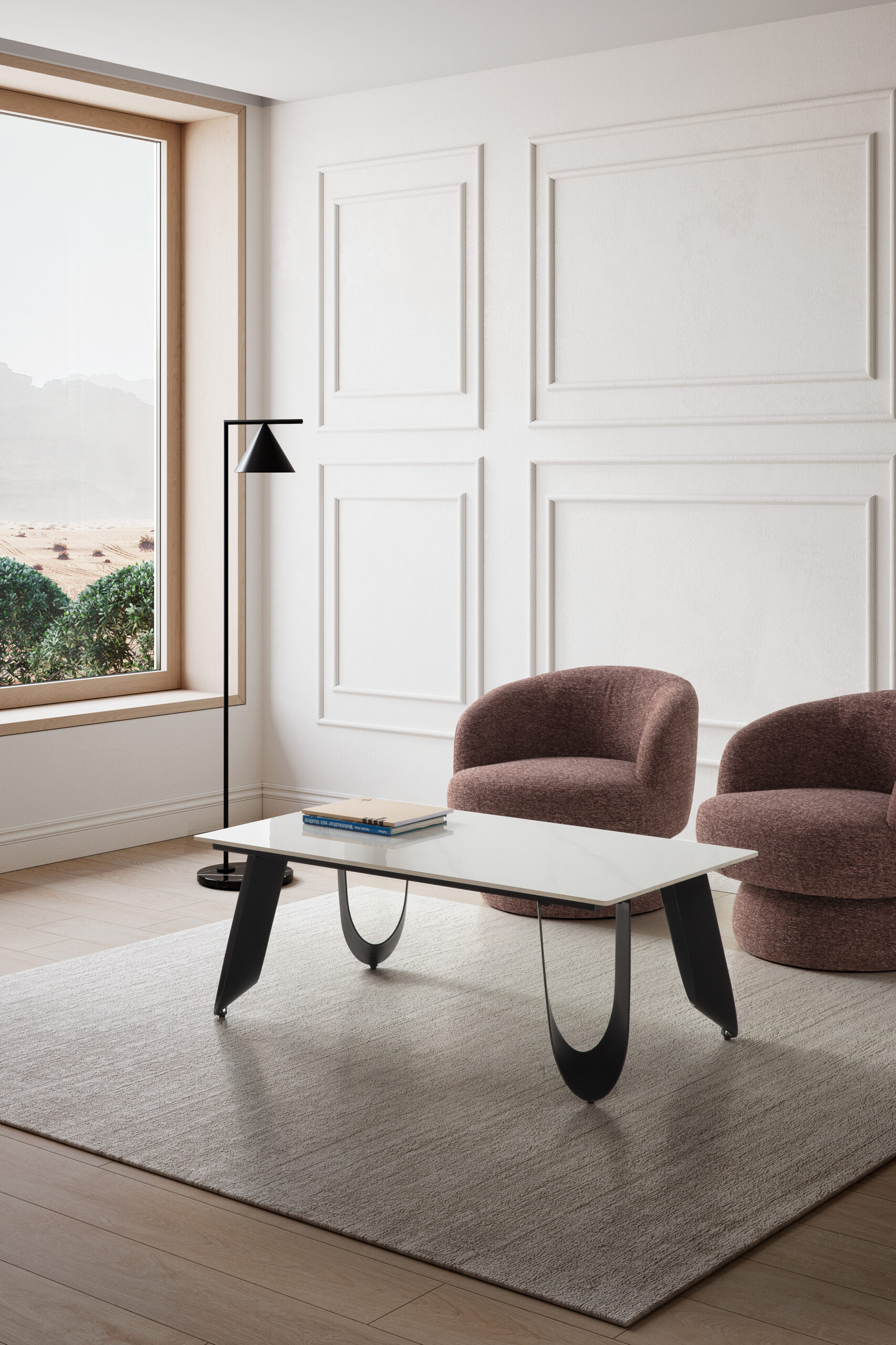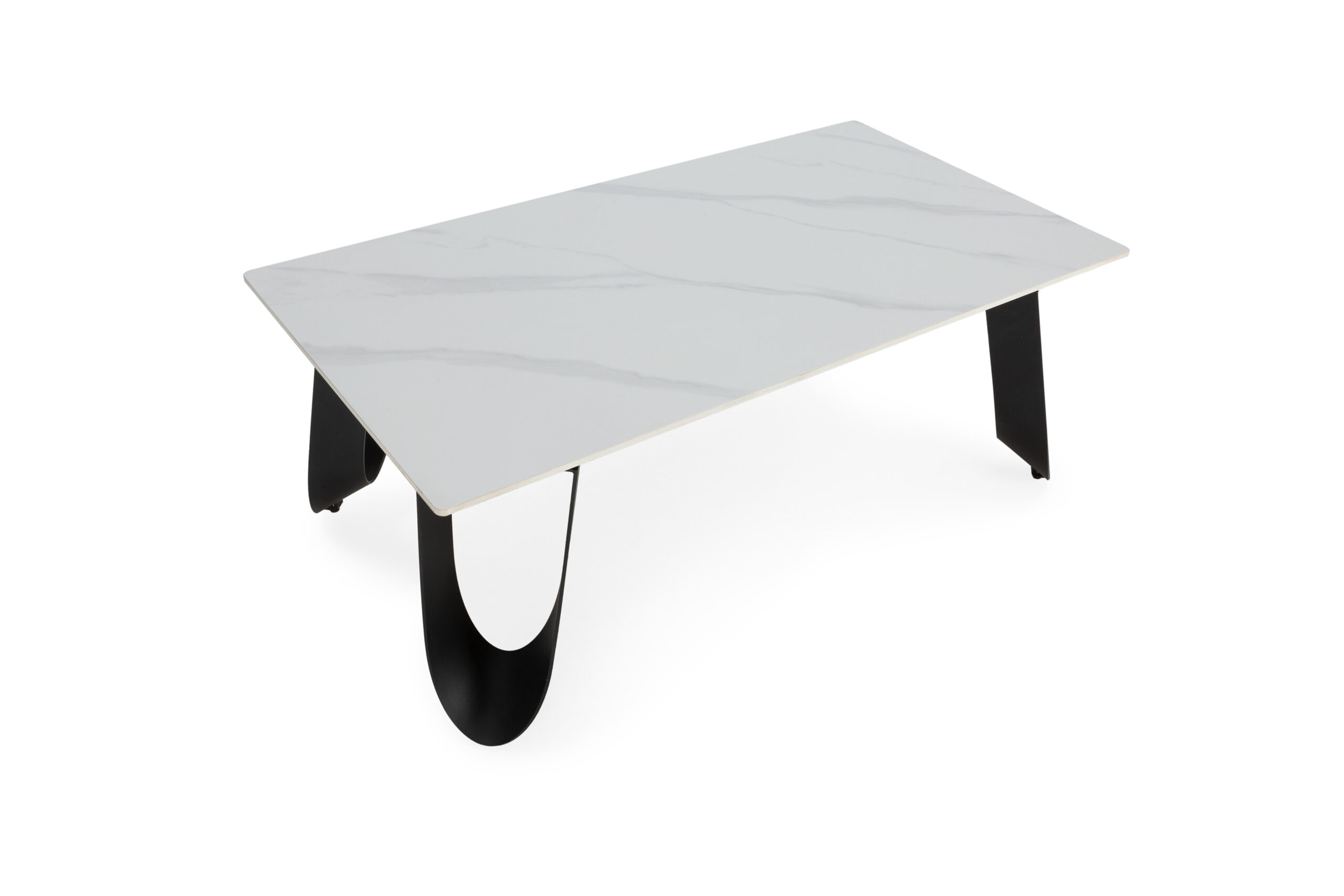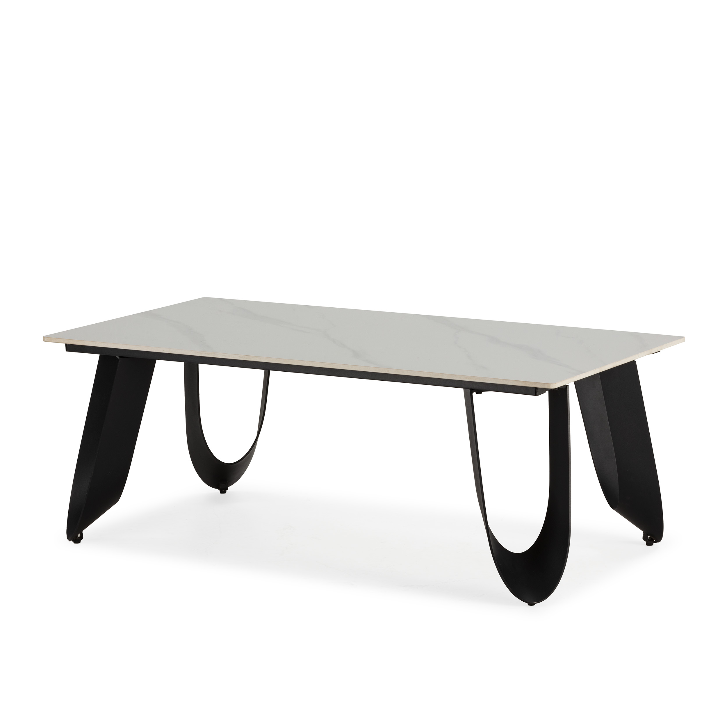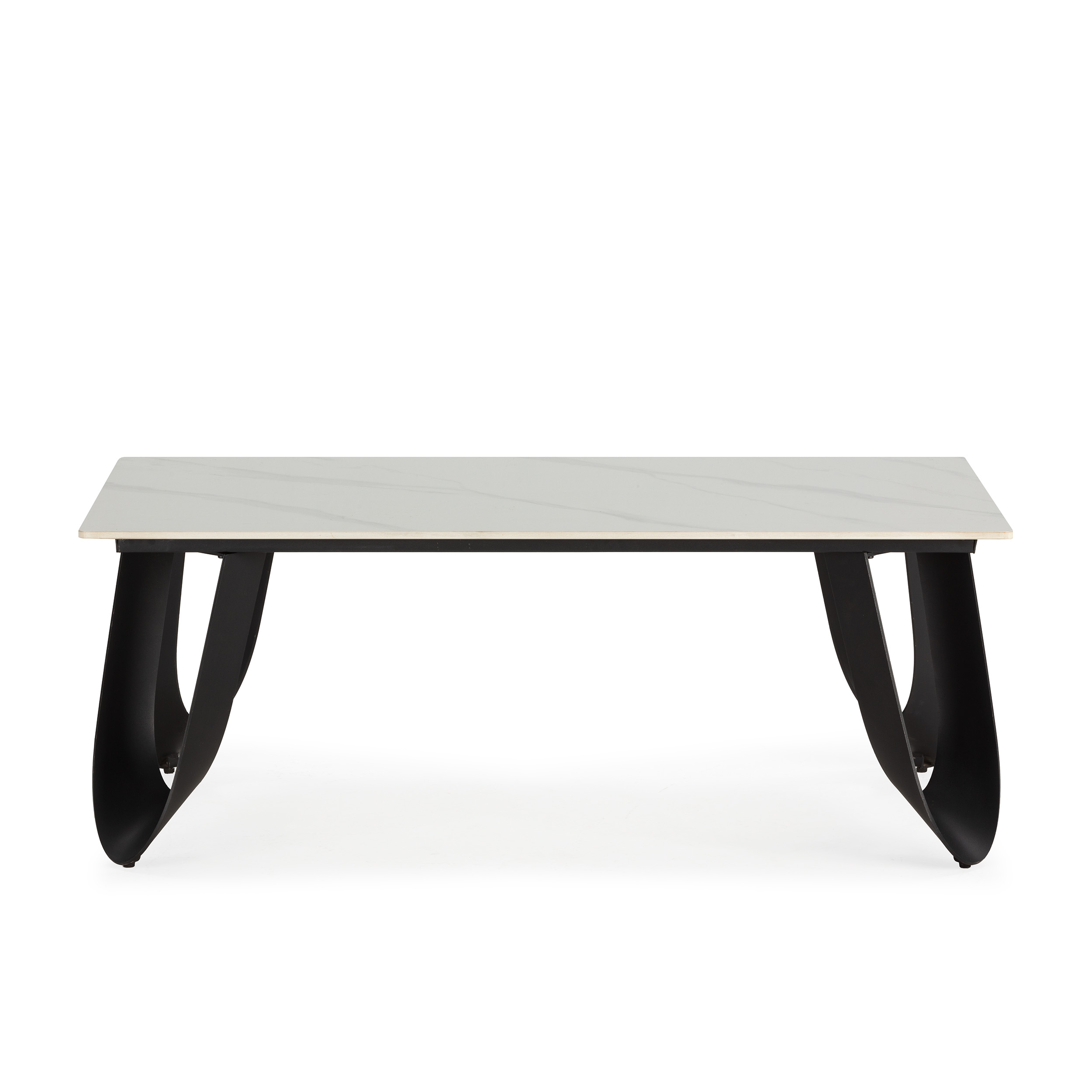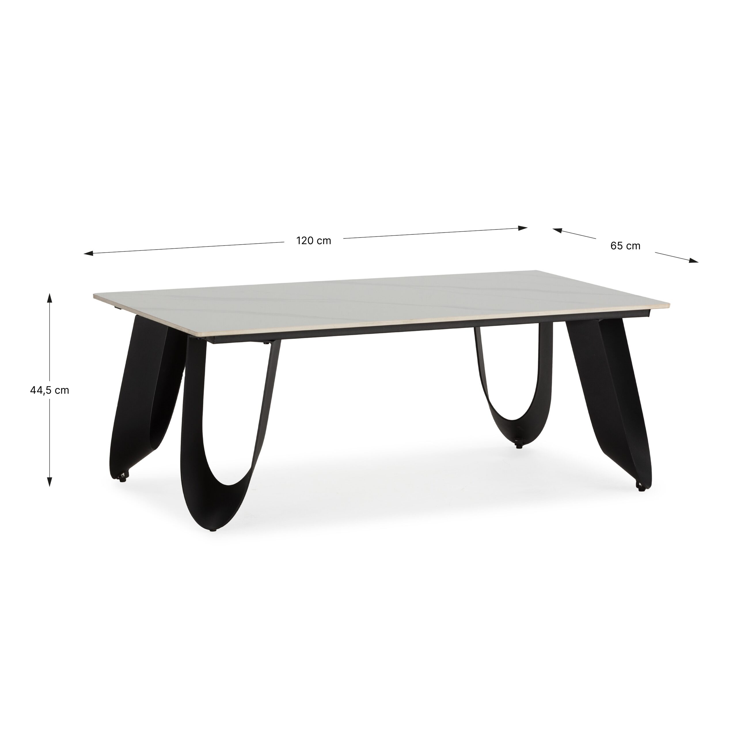 MESA CENTRO RECT. AILA 120CM CERÁM.BL PIE NEGRO PIEDRA SINTERIZADA/METAL