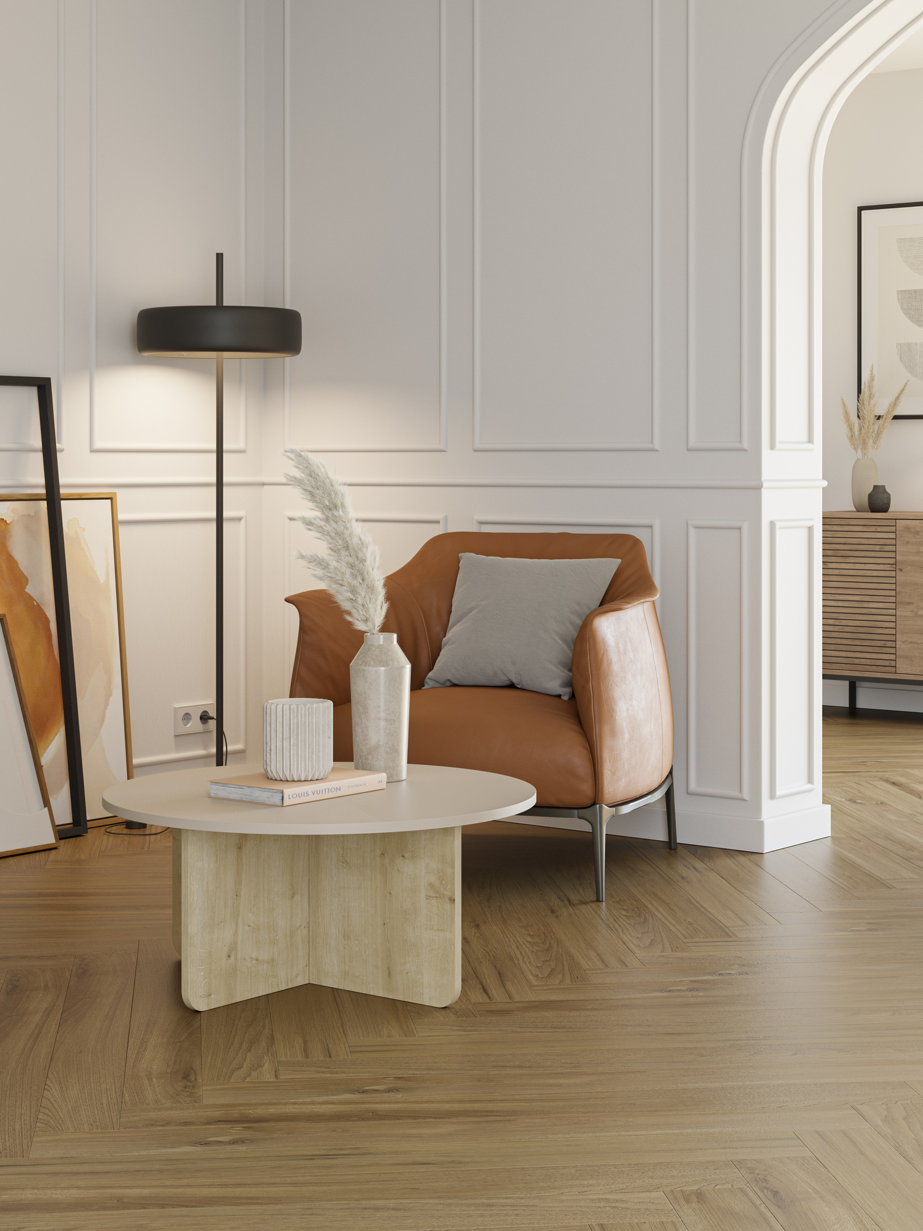 MESA CENTRO RED. HILLARY 80CM CREMA PATA ROBLE
