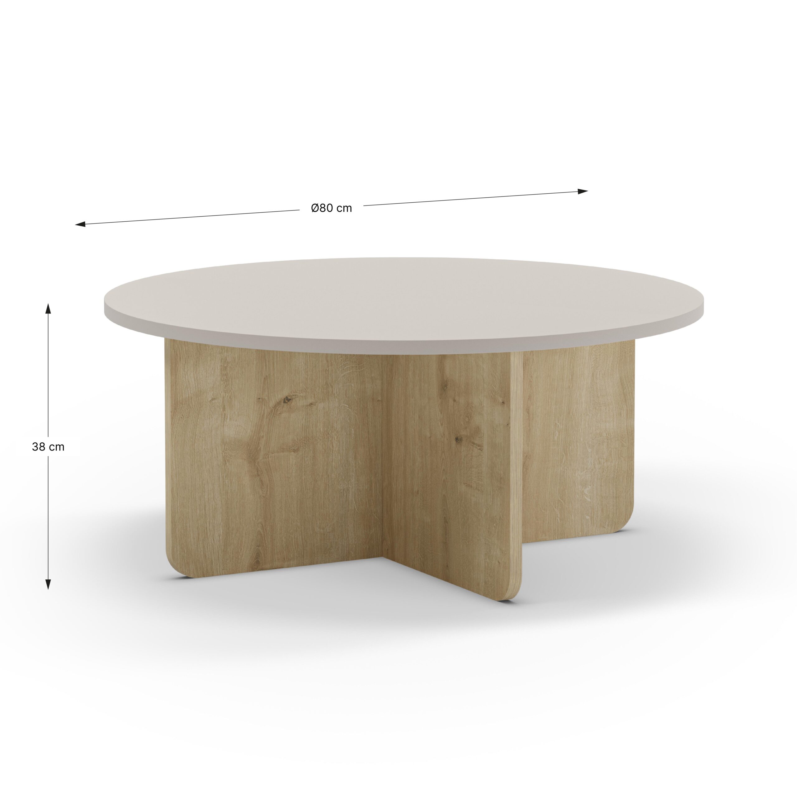 MESA CENTRO RED. HILLARY 80CM CREMA PATA ROBLE MELAMINA
