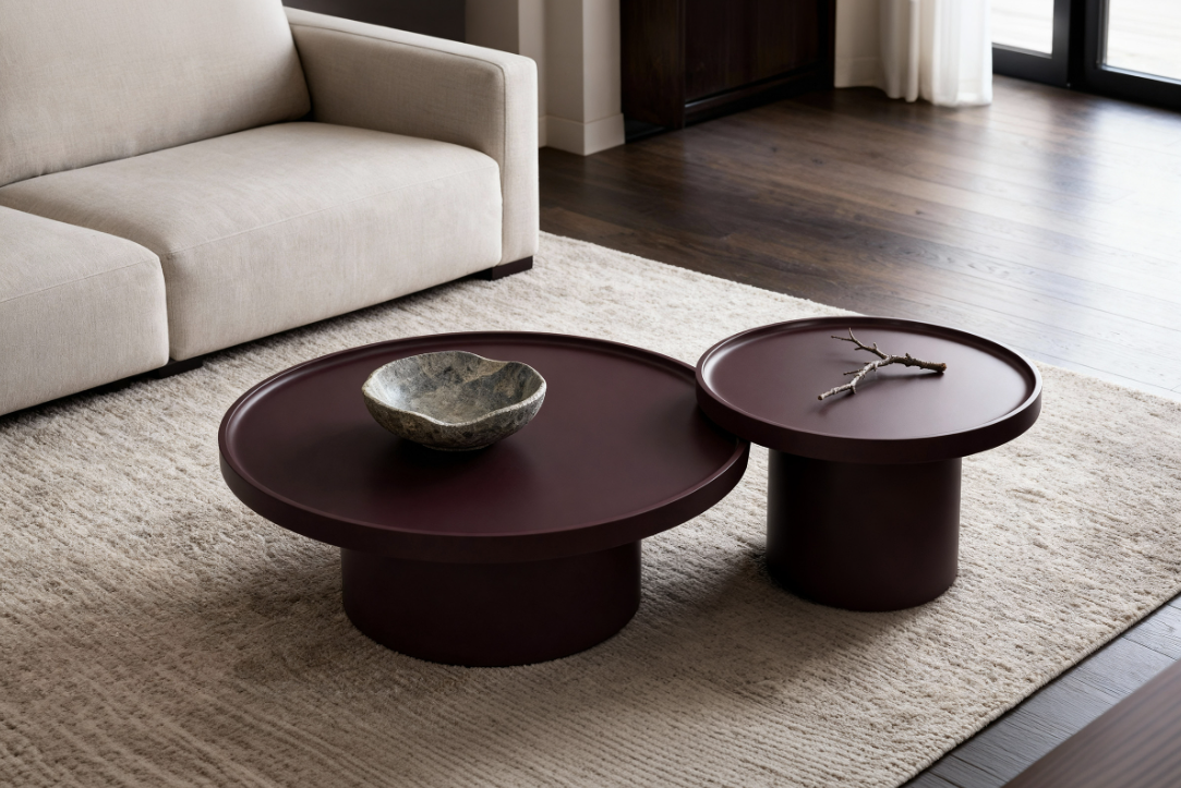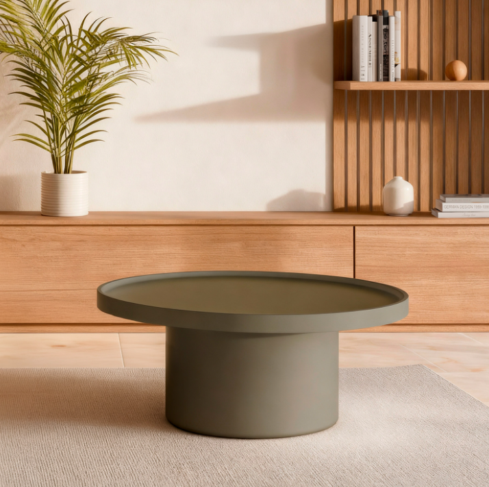 Sus líneas redondeadas y la base cilíndrica crean una silueta equilibrada y contemporánea, ideal para interiores modernos, minimalistas o de inspiración nórdica. Una mesa de centro versátil que combina proporción, diseño y sencillez, perfecta para aportar orden y estilo sin recargar el espacio.
