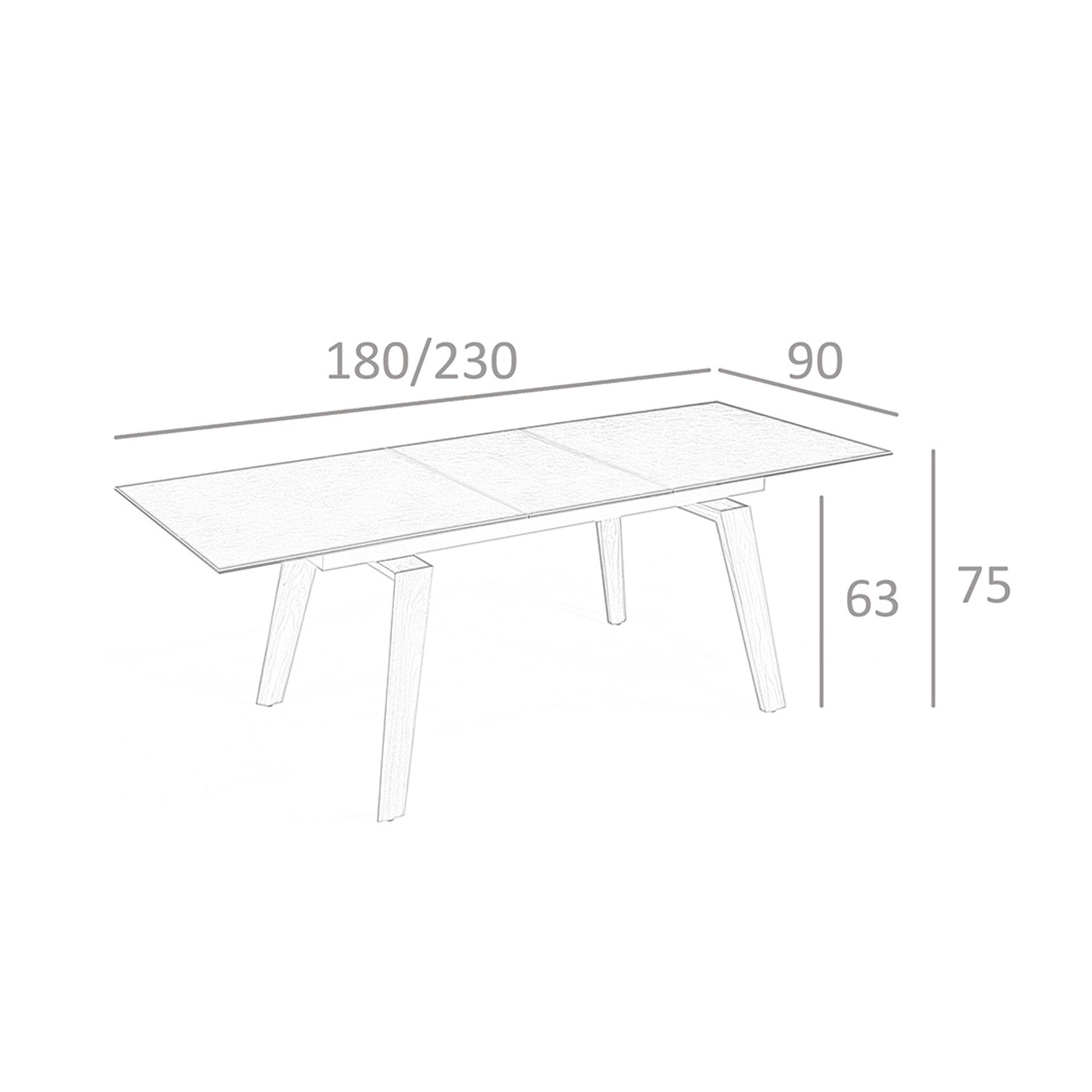 Mesa comedor extensible rectangular mármol porcelánico y nogal modelo 1026 Angel Cerdá S.L.Mesa comedor extensible rectangular de diseño moderno con tapa de mármol porcelánico negro efecto metal en acabado mate. Sus patas de madera chapada en nogal natural así como su adaptabilidad, la convierten en un mueble totalmente funcional y versátil para el día a día.Medidas del producto: 180 x 90 x 75 cm.Esta mesa comedor cuenta con 1 extensible de 50 cm., pudiendo ampliarla de 180 a 230 cm.- Su tapa de mármol porcelánico es resistente y duradera, ofreciendo además un toque de vanguardia y elegancia al ambiente. – Sus patas robustas y de carácter lineal permite combinarla con cualquier silla de nuestro catálogo, sin molestar o interferir en la comodidad de los comensales. – El perfil de la tapa pulido de esta mesa de comedor ofrece un acabado de alta calidad, siendo además, sinónimo de comodidad y elegancia. – Gracias a su extensible central oculto podrá ampliar la mesa, por lo que contará con una mayor versatilidad, pudiendo, según sus necesidades, adaptar la capacidad y acomodar a sus invitados, así como disfrutar de agradables eventos sociales. – Apta para un máximo de 8 comensales.