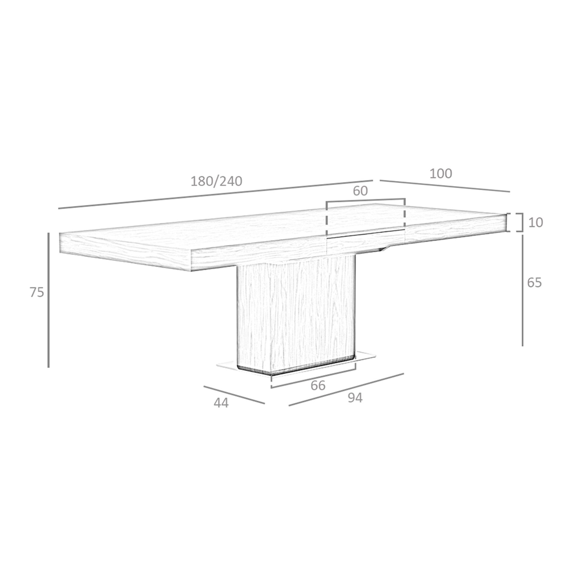 Mesa comedor extensible rectangular nogal modelo 1015 Angel Cerdá S.L.Mesa comedor extensible rectangular de diseño moderno con tapa y estructura de madera chapada en nogal natural. Esta mesa con base de acero inoxidable cromado, gracias a su adaptabilidad, la convierten en un mueble totalmente funcional y versátil para el día a día.Medidas del producto: 180 x 100 x 75 cm.Esta mesa comedor cuenta con 1 extensible de 60 cm., pudiendo ampliarla de 180 a 240 cm.- Su tapa de madera chapada en nogal natural de 0,5 mm de espesor es resistente y duradera, ofreciendo además, un toque moderno y elegante al ambiente. – La originalidad de su estructura aúna modernidad y robustez, así como la mayor comodidad para sus comensales. – El perfil de la tapa recto de esta mesa de comedor aporta, gracias a su diseño lineal, el toque de vanguardia que busca para su comedor. – Gracias a su extensible mariposa central oculto disfrutará de una mesa totalmente versátil y funcional, que podrá adaptar según el número de invitados. – Apta para un máximo de 10 comensales.