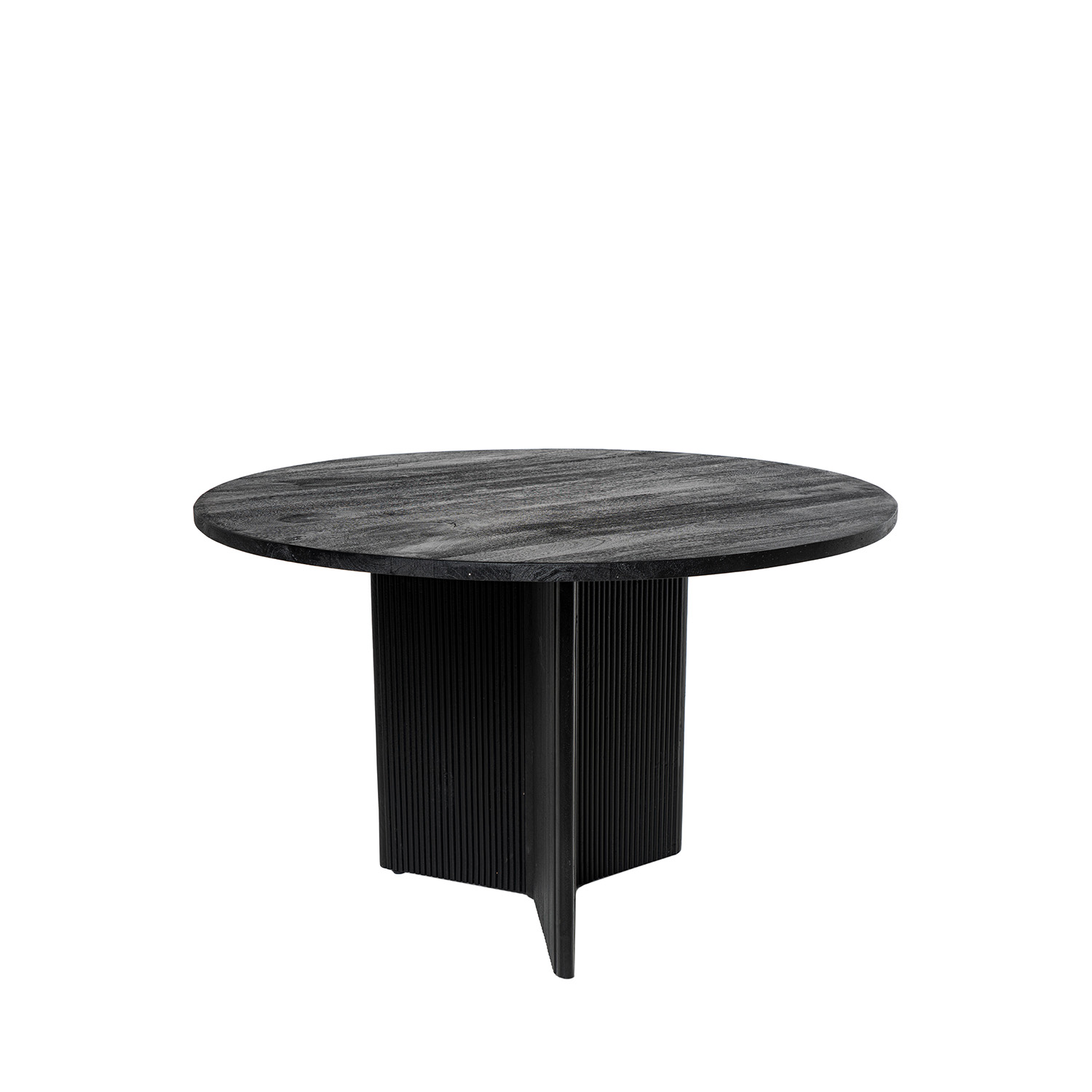 Fabricada en madera de mango con un refinado acabado en color negro, esta mesa destaca por su presencia contemporánea y su capacidad para integrarse en distintos estilos decorativos.