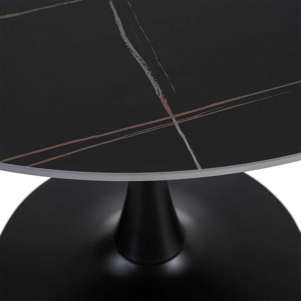 MESA COMEDOR NEGRO PIEDRA SINTERIZADA 100 X 100 X 75 CM Material: Piedra sinterizada – metal (hierro) Diámetro base: 60cm. Grueso top: 1.1cm. Precisa montaje.