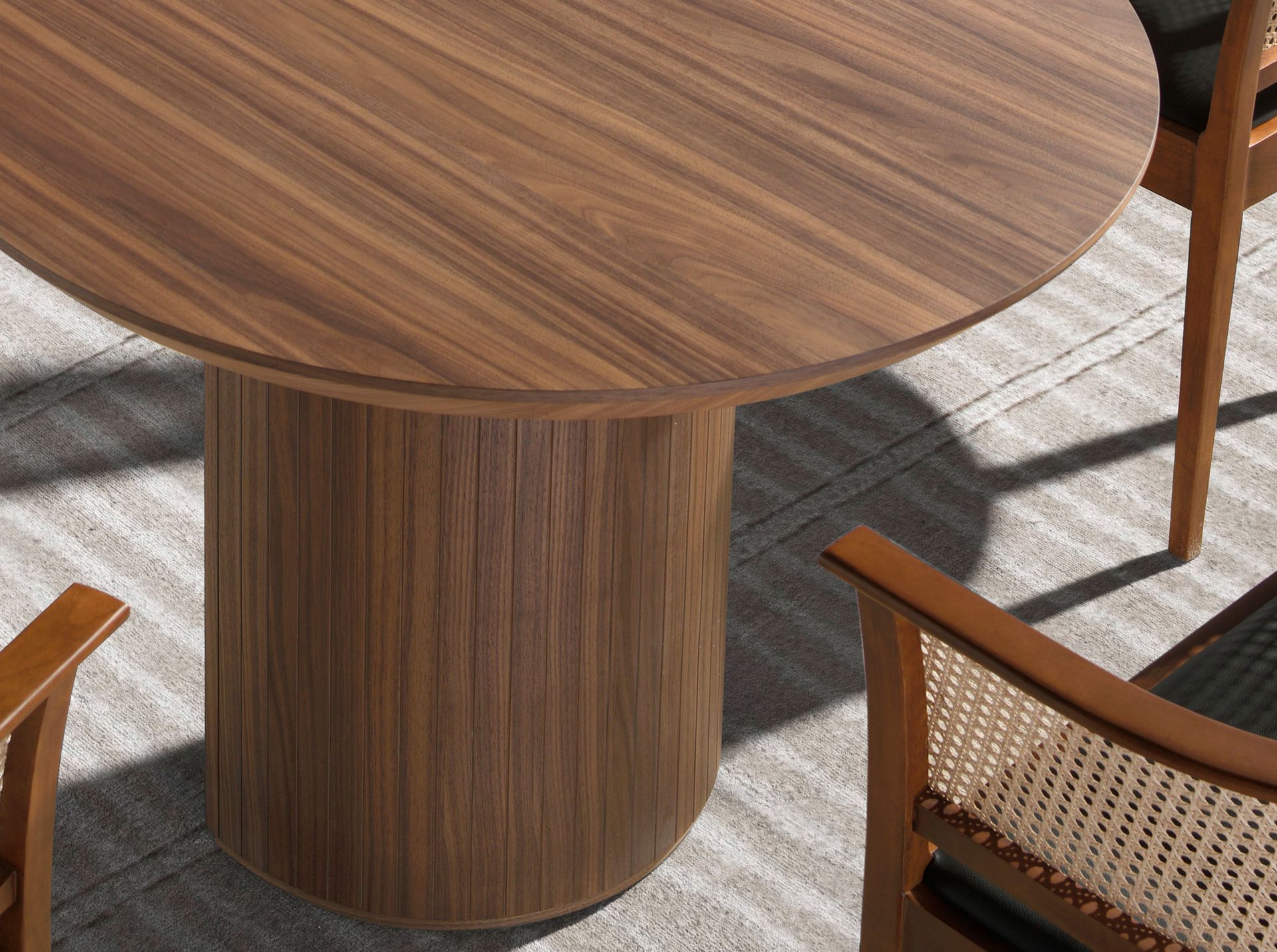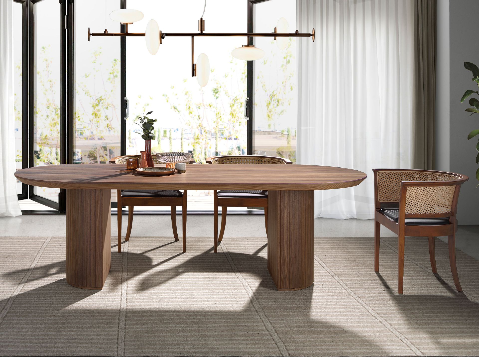 Mesa comedor ovalada medio punto nogal | – Material de la tapa: Madera chapada en nogal natural de 0,5 mm de espesor- Material de las patas: Madera chapada en nogal natural de 0,5 mm de espesor