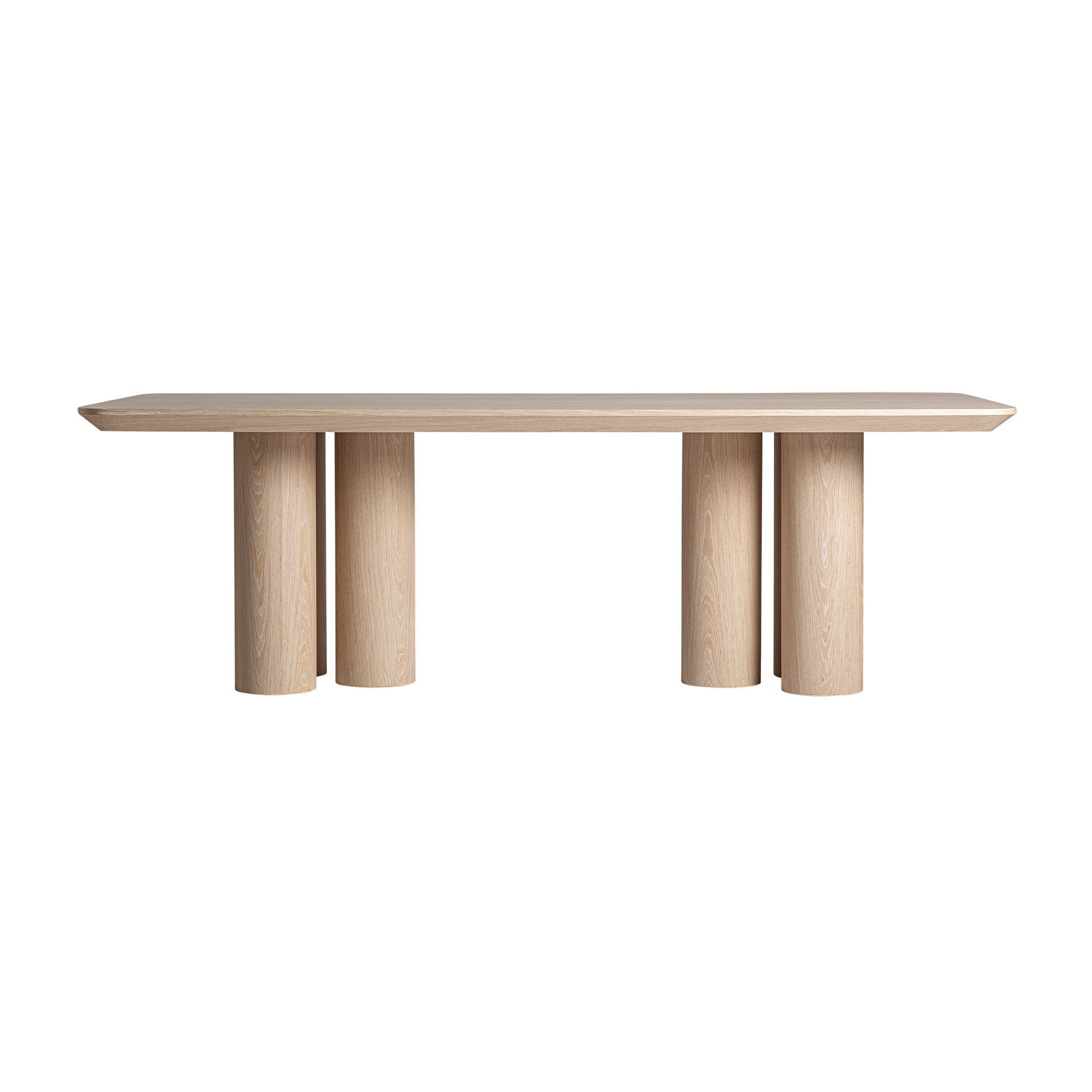 Mesa comedor Prayssac de estilo art deco fabricado en chapa de roble en color beige combinado con madera contrachapada y madera dm.