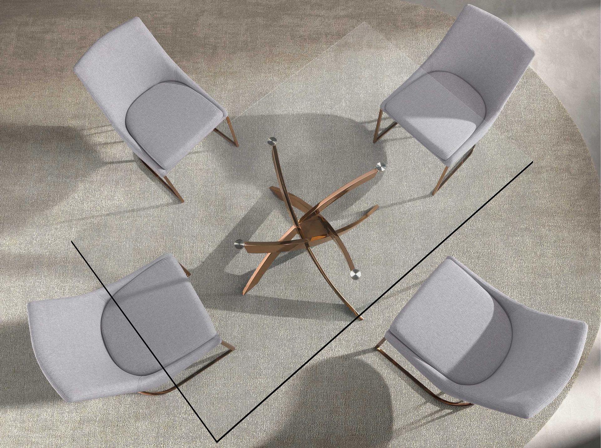 Mesa comedor rectangular cristal templado y acero rosa | – Material de la tapa: Cristal templado de 12mm de espesor- Material de las patas: Acero inoxidable cromado en color oro rosa de 22 micras