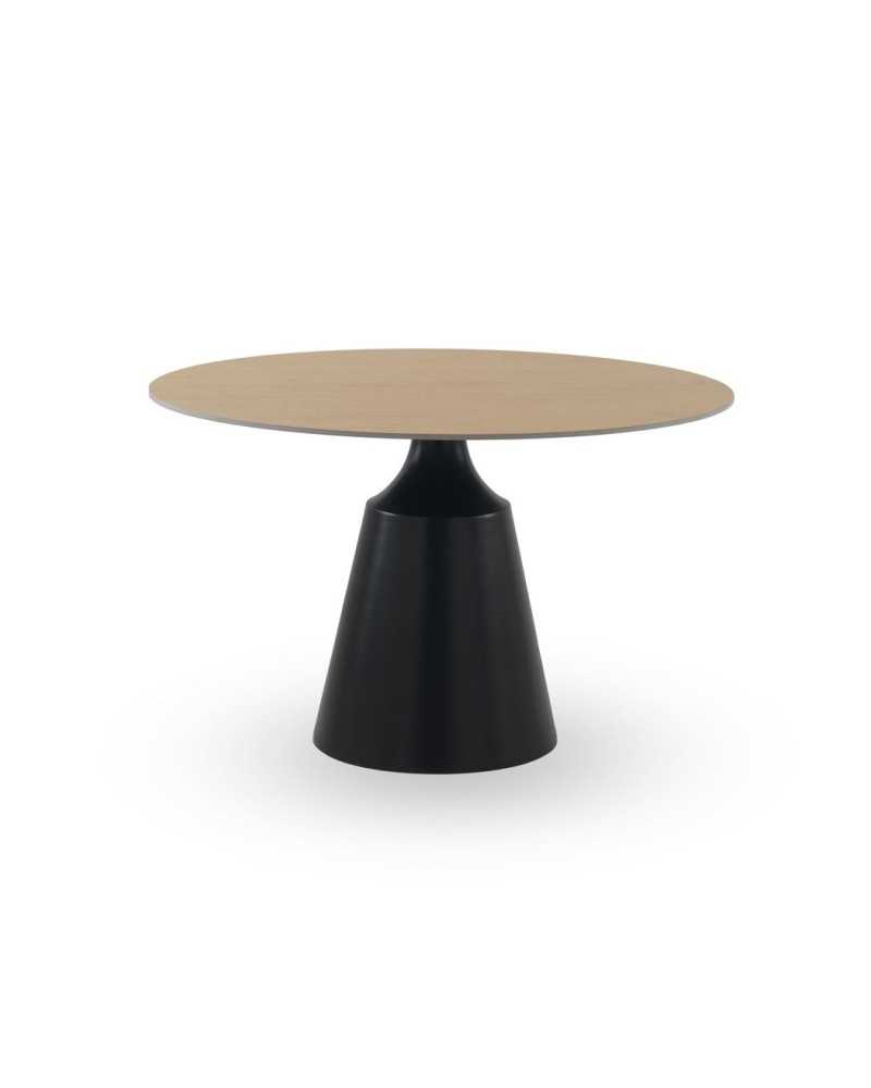 MESA COMEDOR REDONDA 120 DIAM. BASE METAL NEGRA CON SOBRE CERAMI FRESNO NATURAL