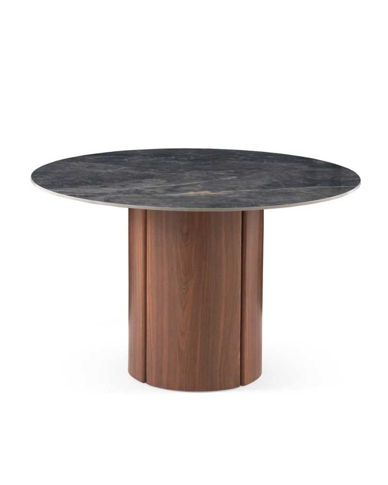 MESA COMEDOR REDONDA 120 DIAM. MDF EN NOGAL CON SOBRE CERAMICO M MARMOL GRIS OSCURO