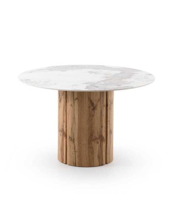 MESA COMEDOR REDONDA 120 DIAM. MDF EN ROBLE CON SOBRE CERAMICO M MARMOL CALACATTA