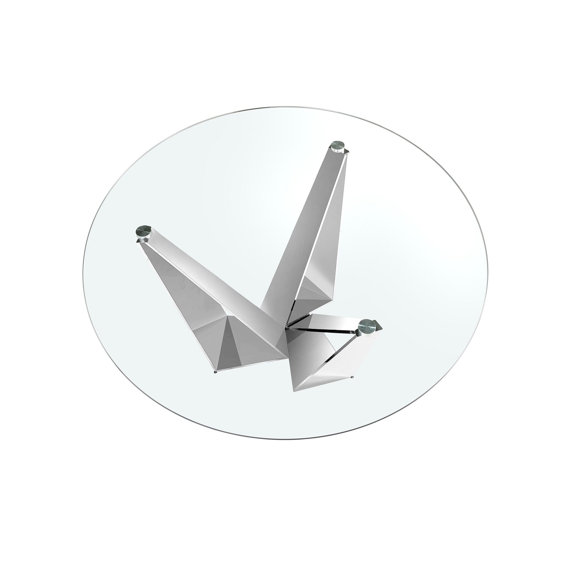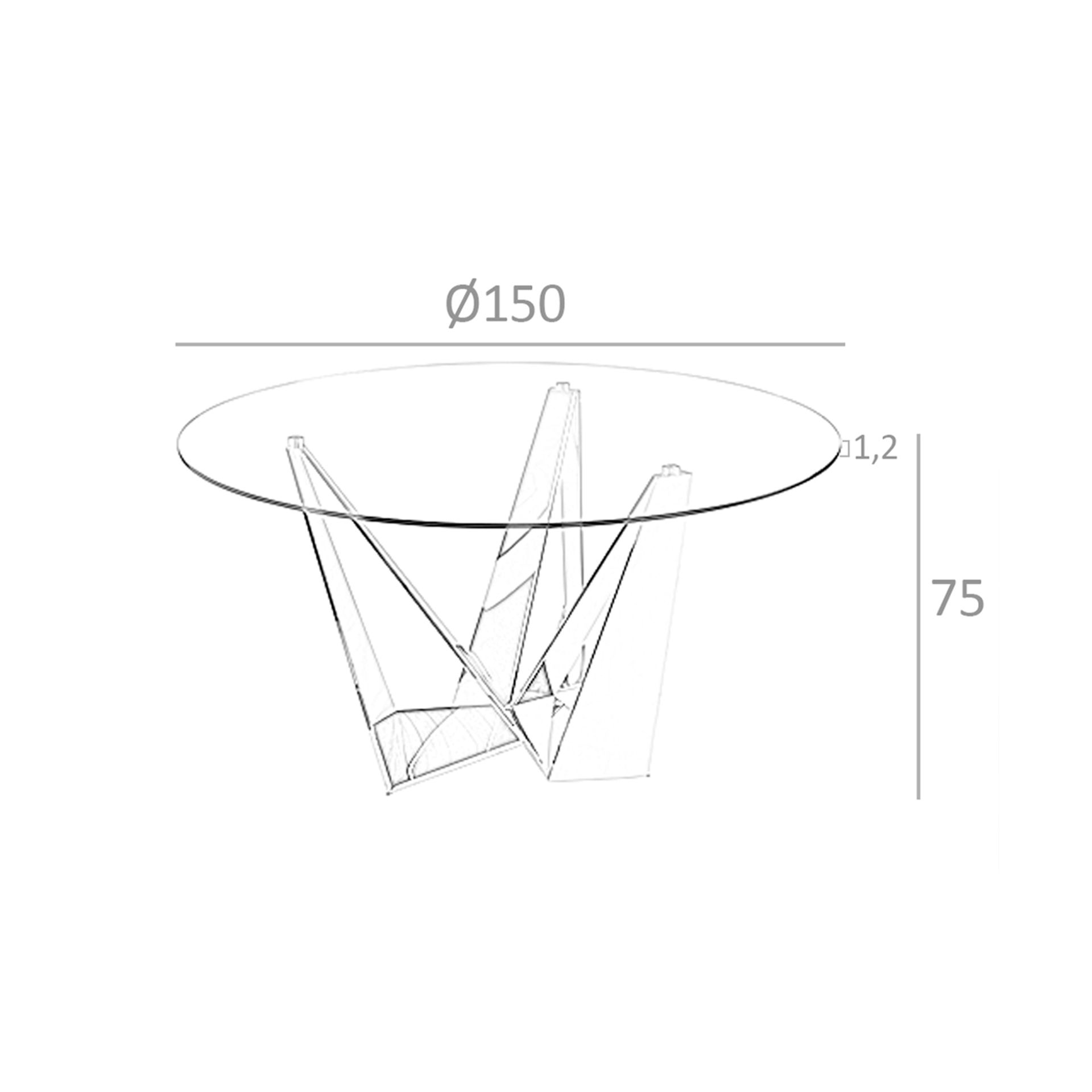 Mesa comedor redonda cristal templado y acero cromado | – Material de la tapa: Cristal templado de 12mm de espesor- Material de las patas: Acero inoxidable cromado de 22 micras