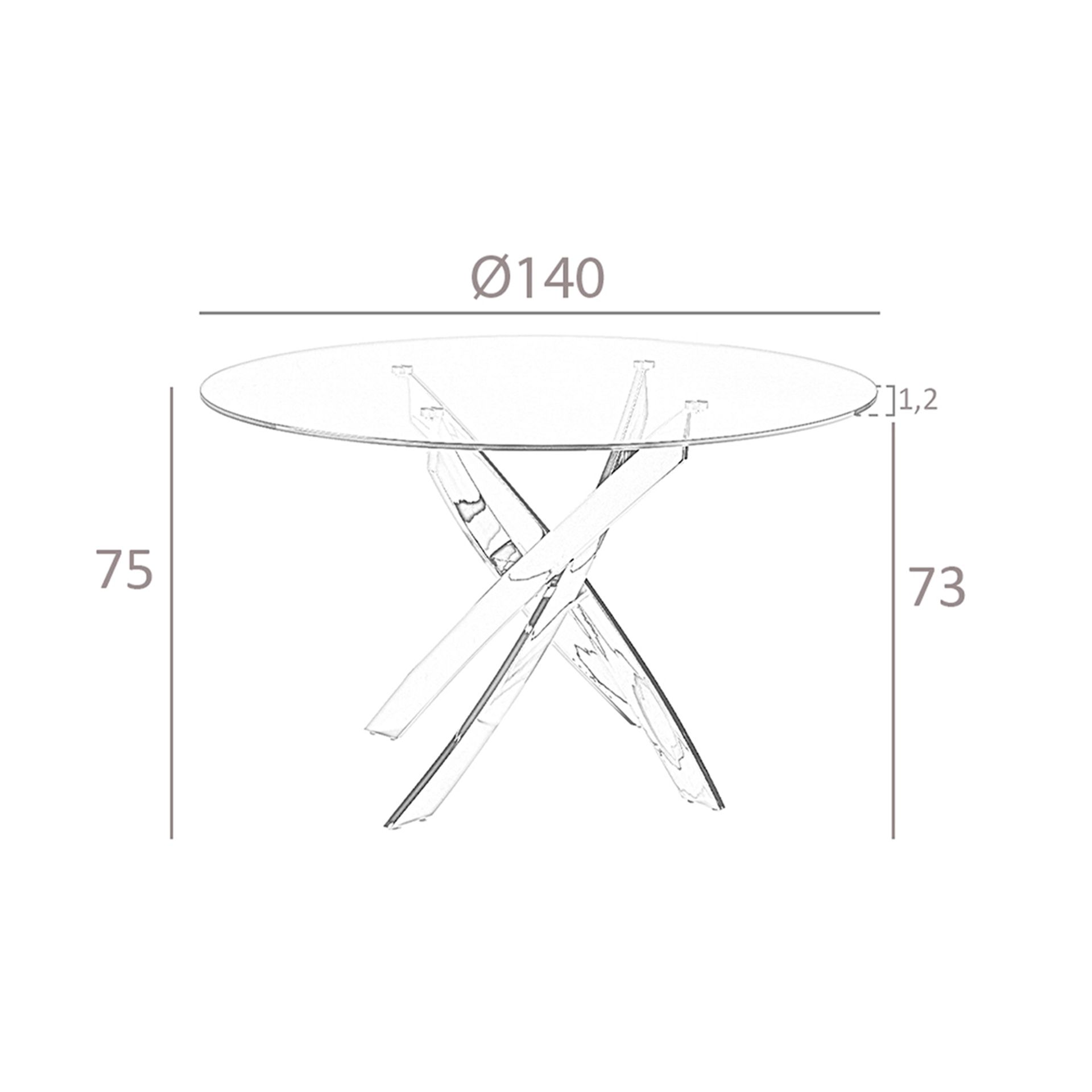 Mesa comedor redonda cristal templado y acero rosa modelo 1169-Ø140 Angel Cerdá S.L.Mesa comedor redonda de diseño moderno con tapa fija de cristal templado. Sus originales patas de acero inoxidable cromado en color oro rosa son elementos claves a destacar de su diseño.Medidas del producto: Ø140 x 75 cm.- Su tapa de cristal templado de 12 mm de espesor es resistente, duradera, y favorece la sensación de amplitud en el espacio. – La originalidad de sus patas aúnan el estilo más vanguardista de nuestra marca con la mayor calidad y comodidad para sus comensales. – El perfil de la tapa pulido de esta mesa de comedor ofrece un acabado de alta calidad, siendo además, sinónimo de comodidad y elegancia. – El diseño versátil a la vez que funcional, convertirá esta mesa en la protagonista de su comedor. – Apta para un máximo de 6 comensales.