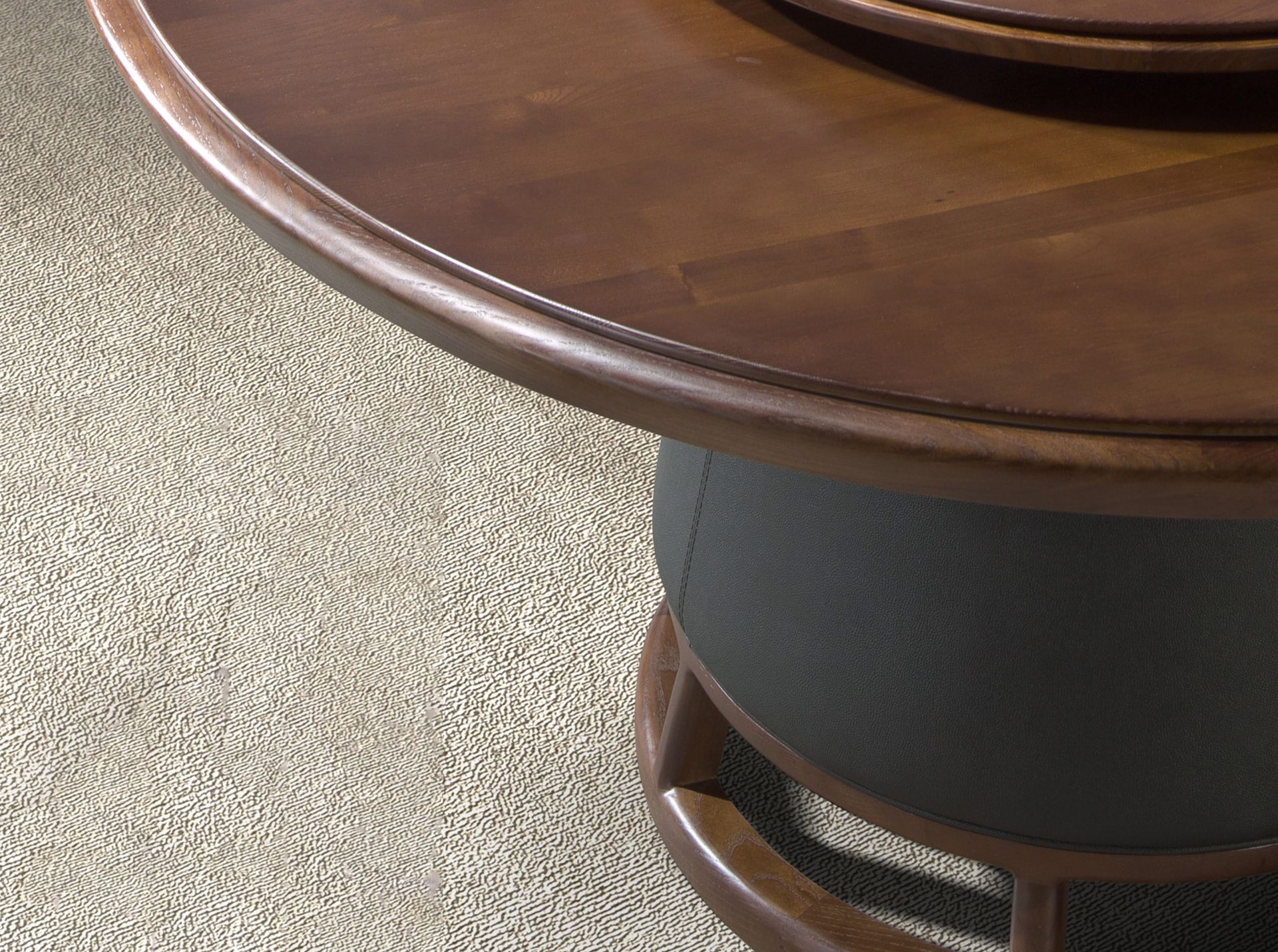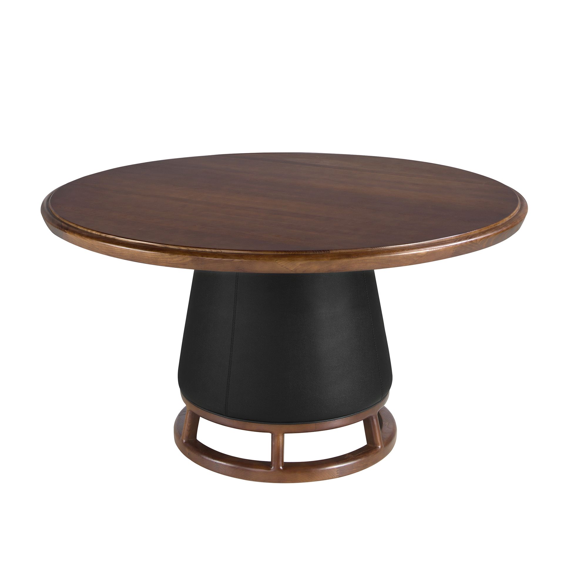 Mesa comedor redonda nogal oscuro y madera tapizada en polipiel