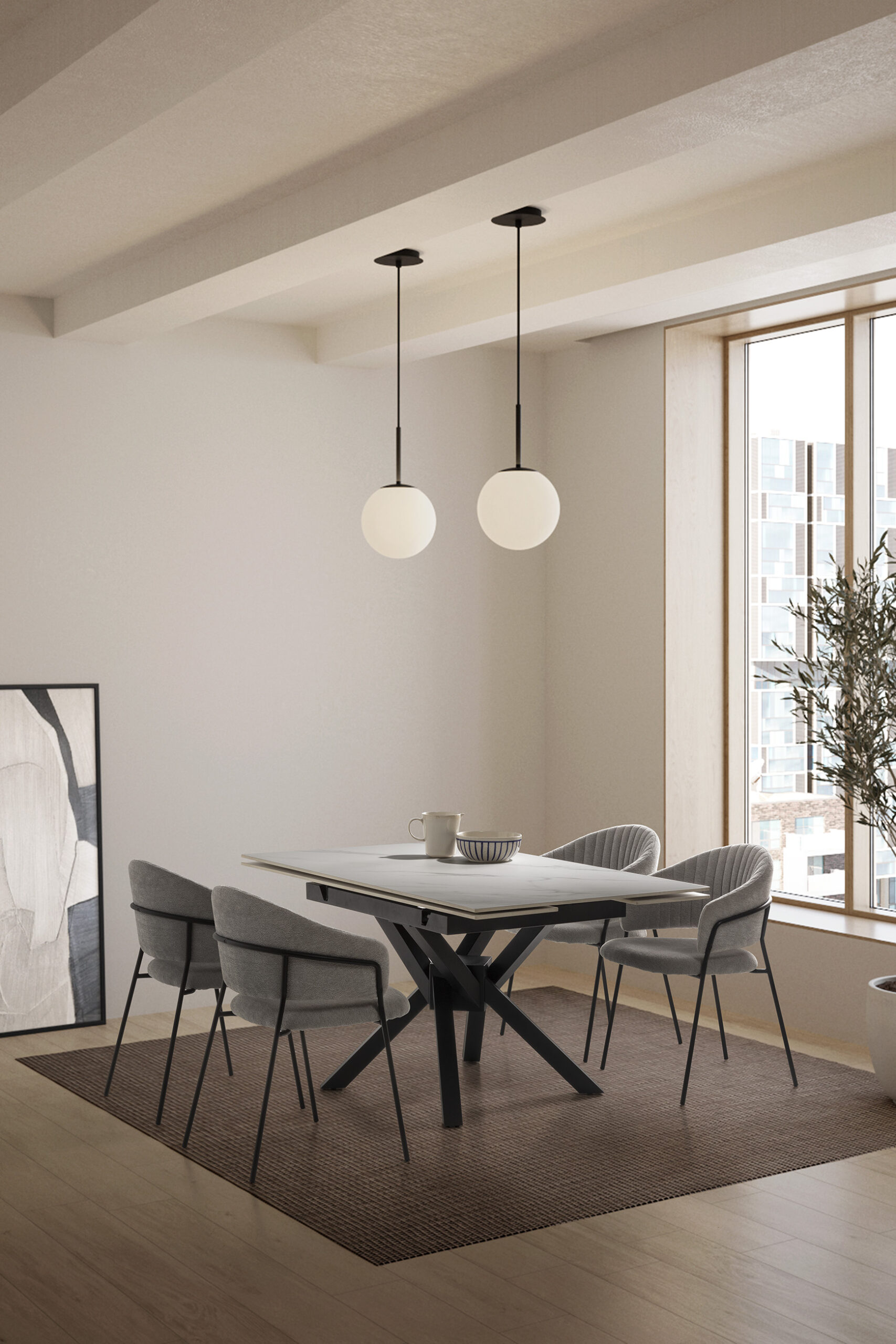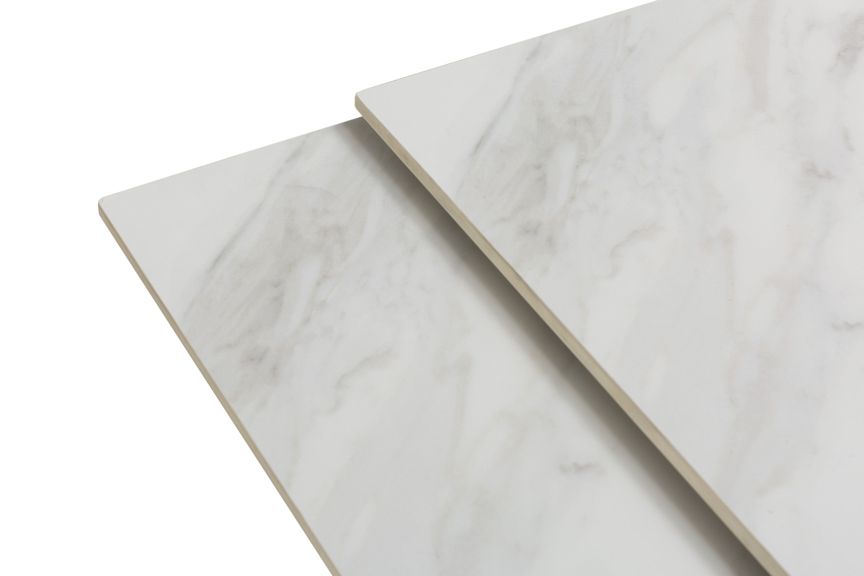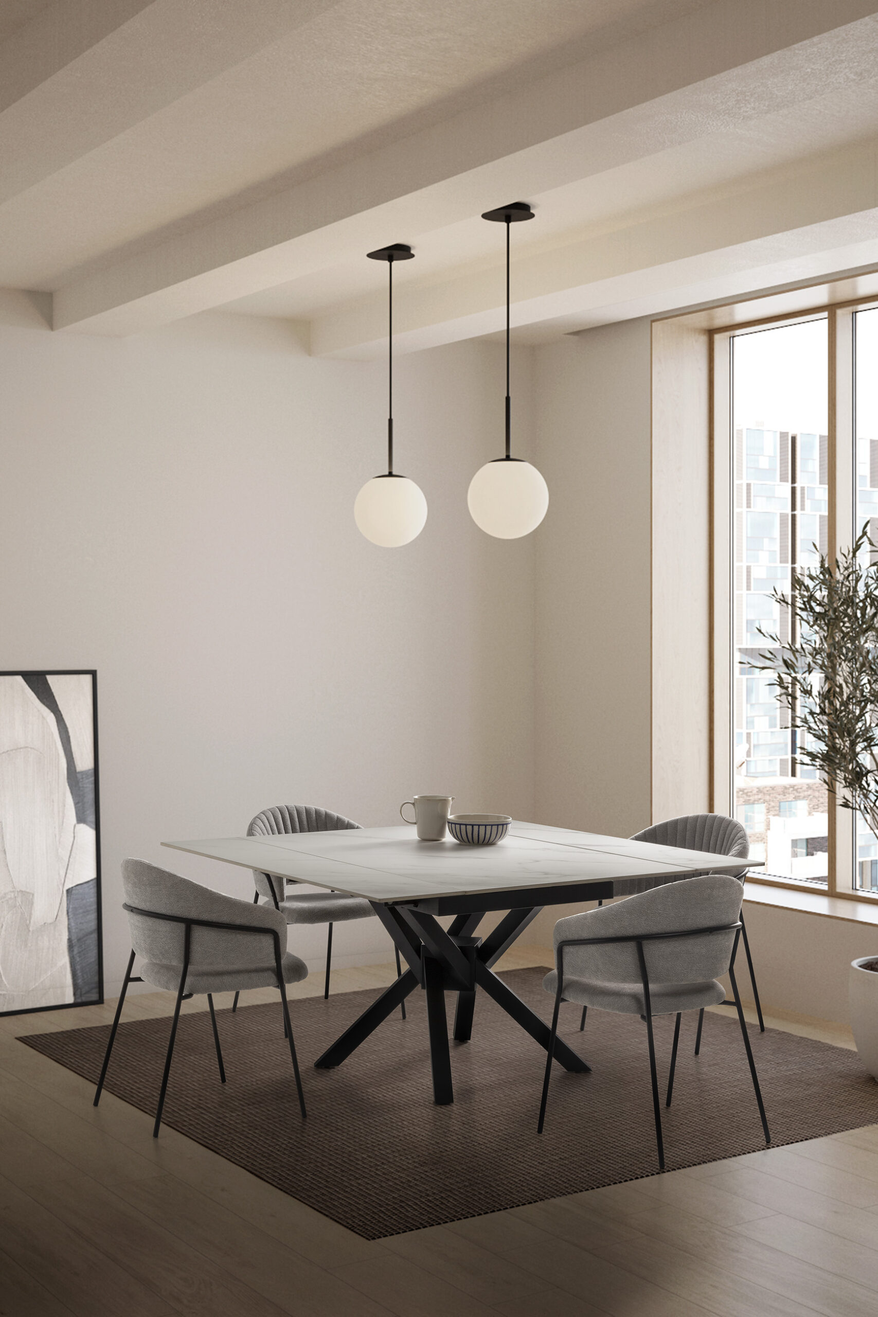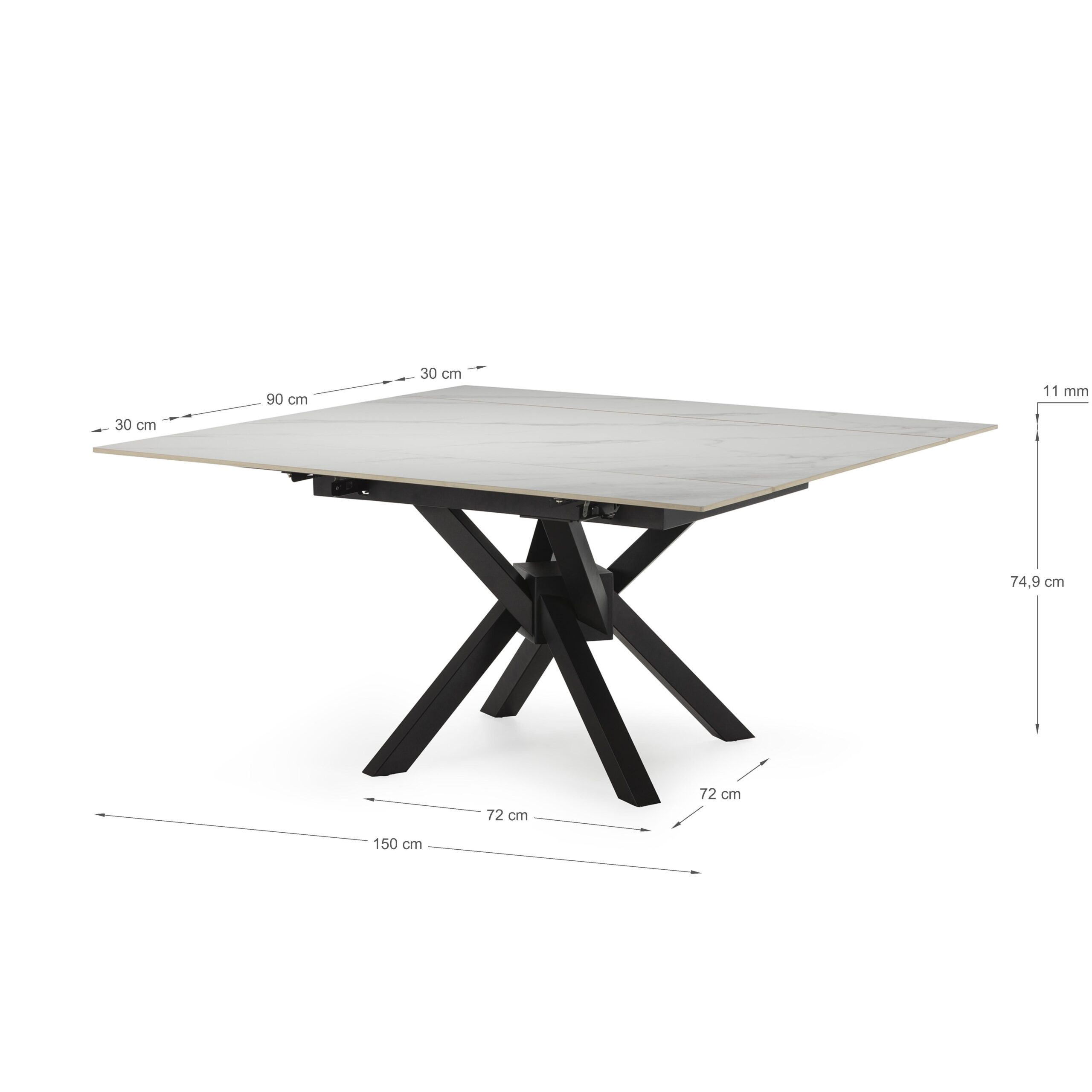 MESA CUADRADA EXT. ARLENE 90/150 BLANCO PATAS META PIEDRA SINTERIZADA/METAL