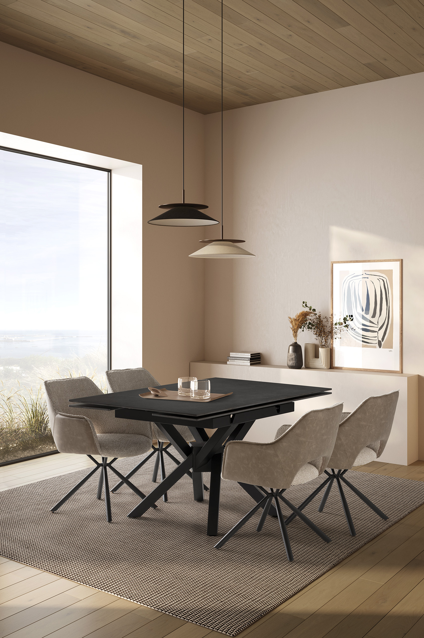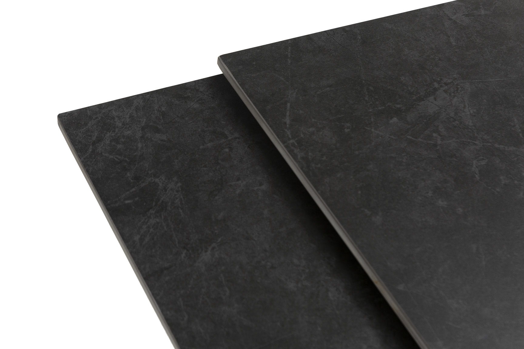 MESA CUADRADA EXT. ARLENE 90/150 GRIS OSCURO PATAS PIEDRA SINTERIZADA/METAL