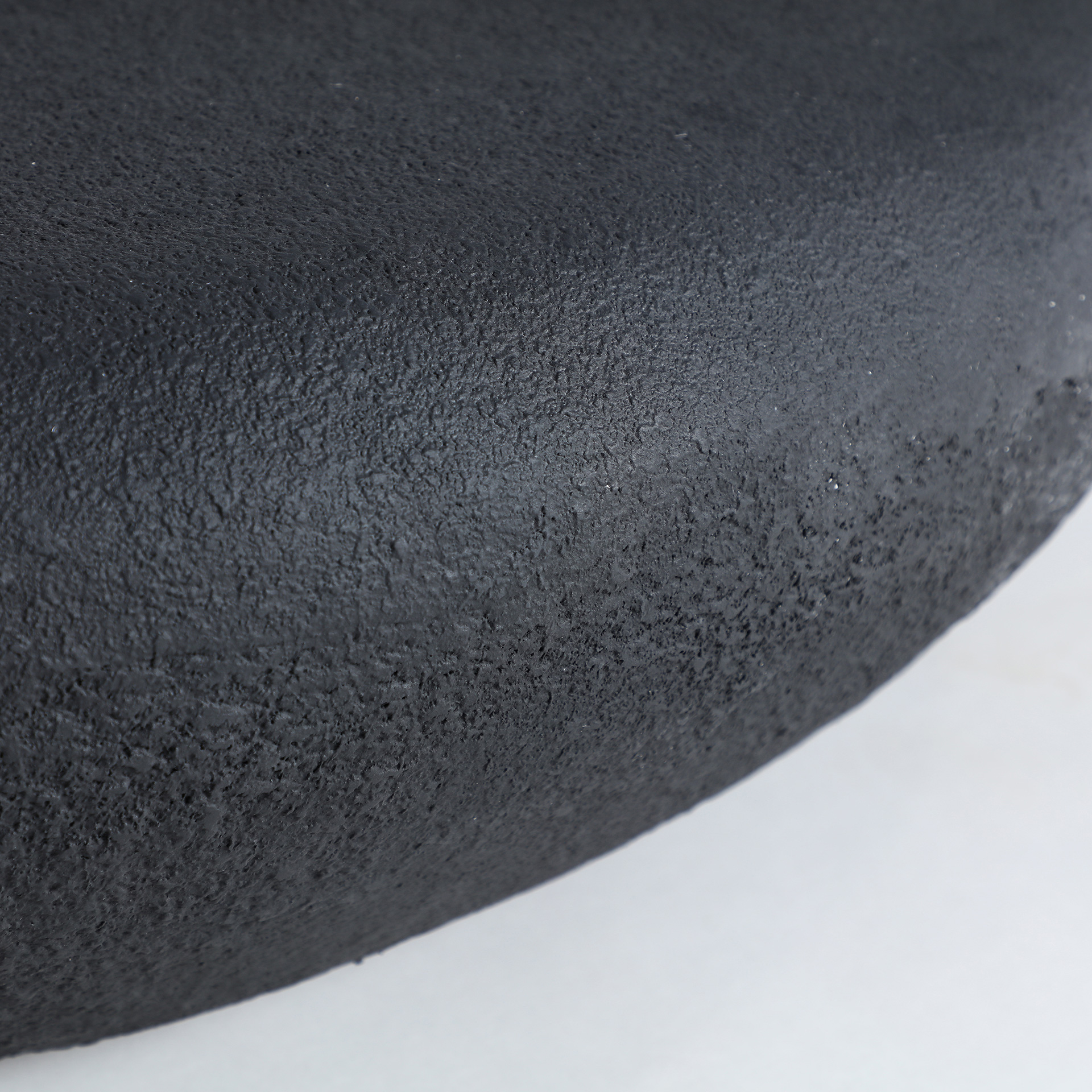 Mesa de centro Cholet de estilo contemporáneo, fabricado en hormigón armado en color negro con acabado rugoso.