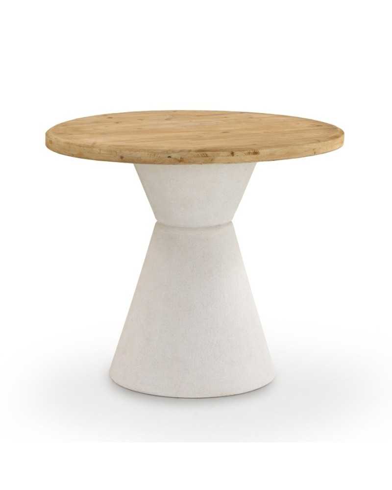 MESA DE COMEDOR REDONDA EN MADERA DE ABETO Y BASE DE POLIRESINA BLANCO
