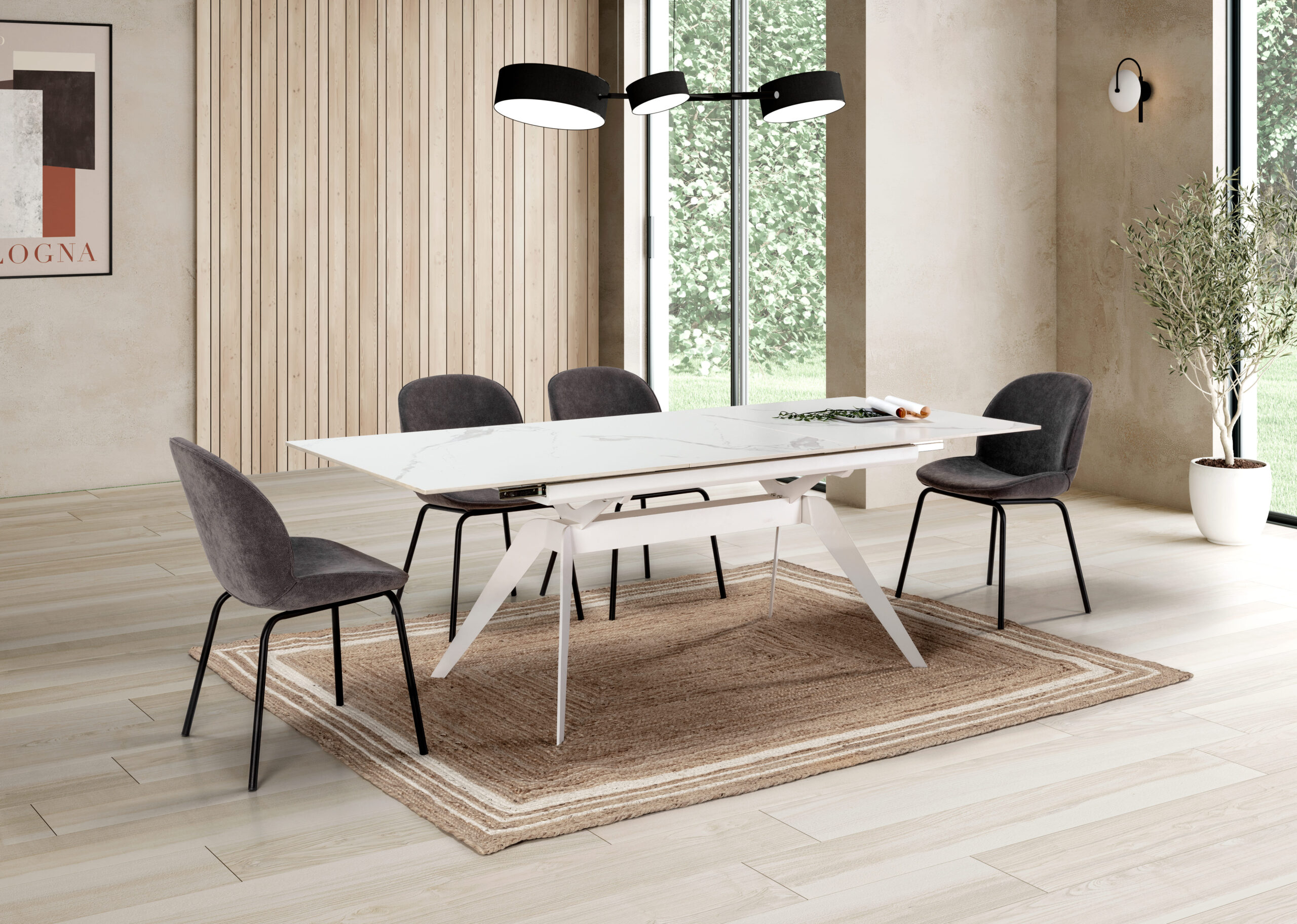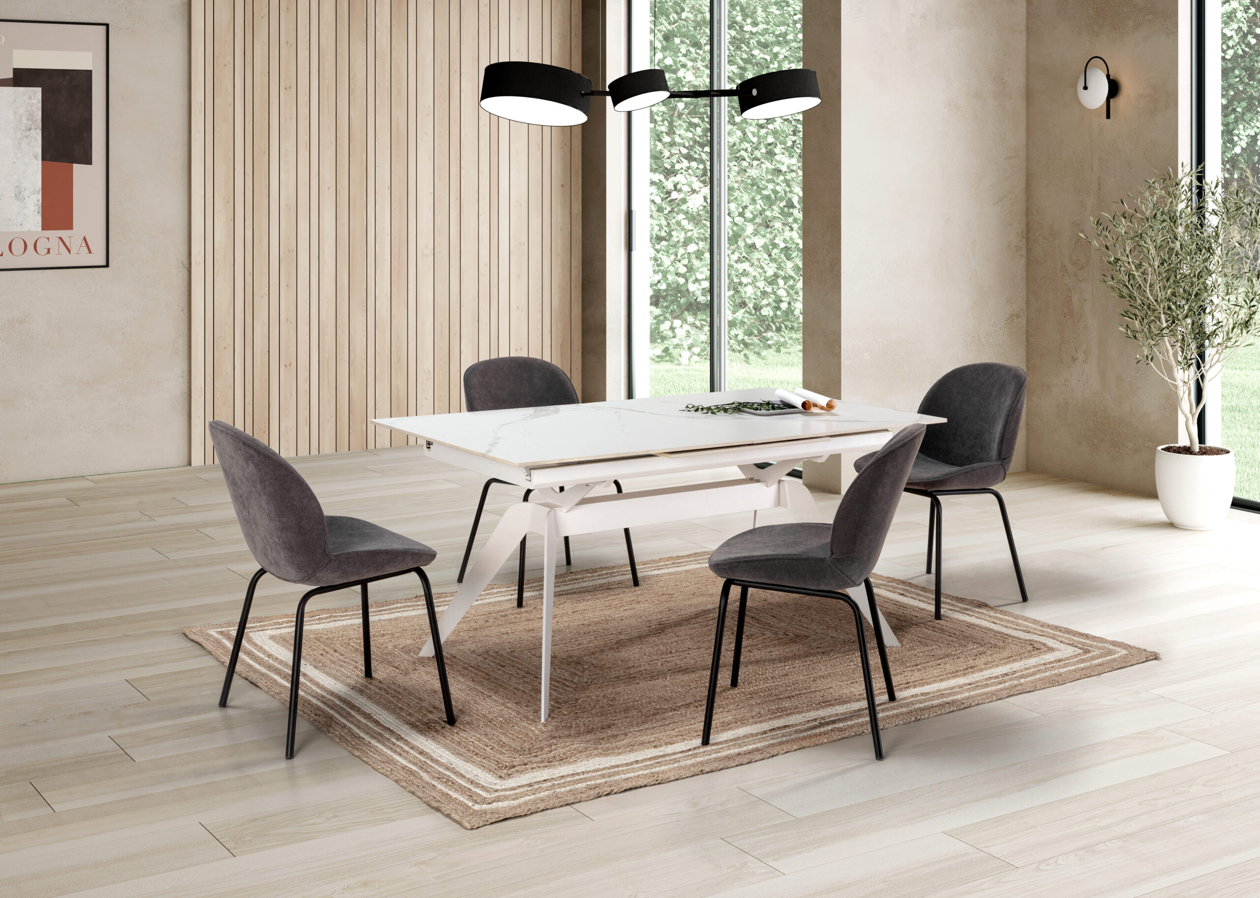 MESA RECT. EXT. LULA CERÁMICA BLANCA PIE BLANCO CERAMICA/METAL