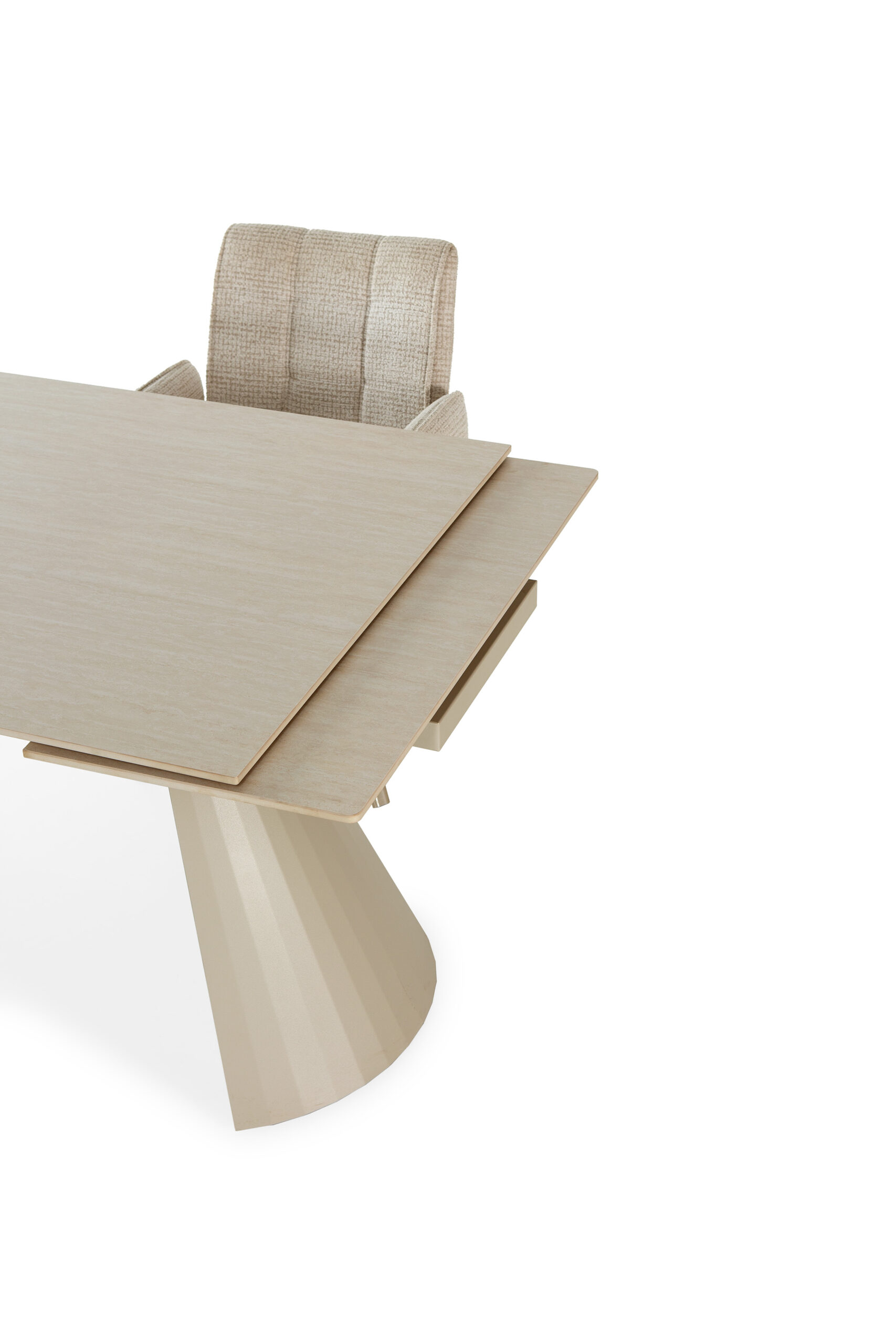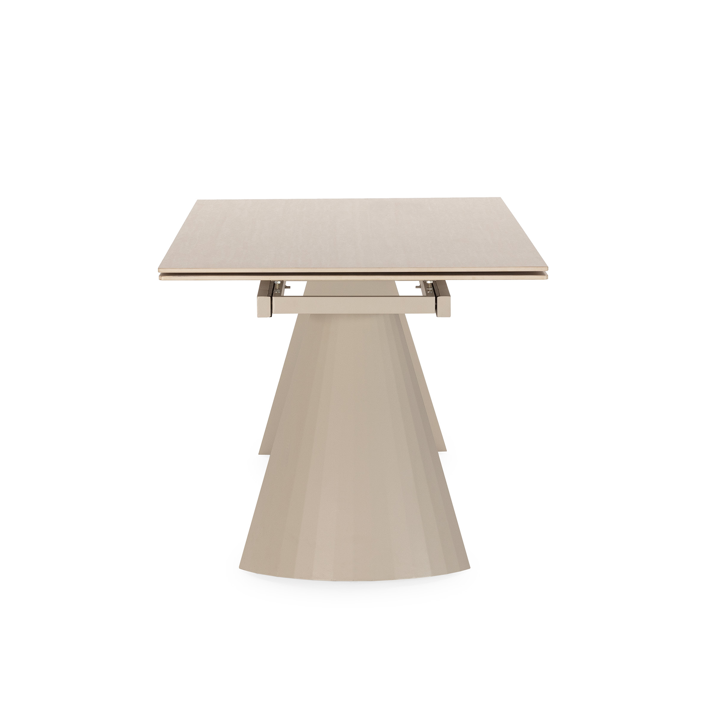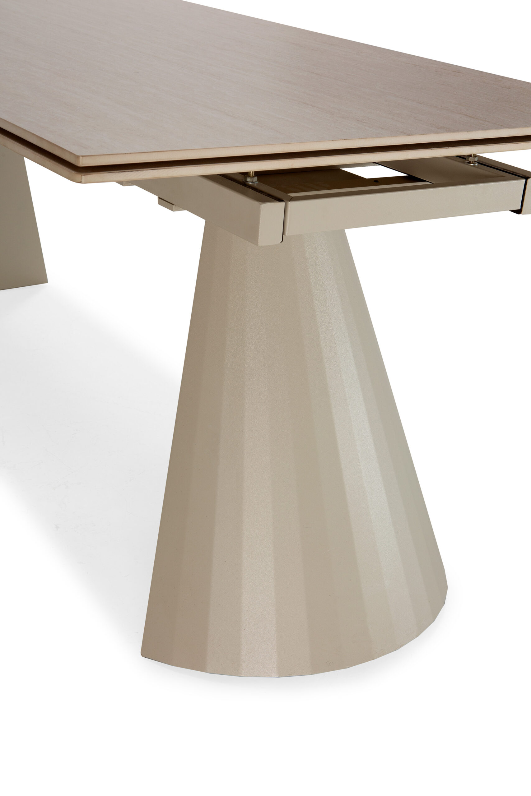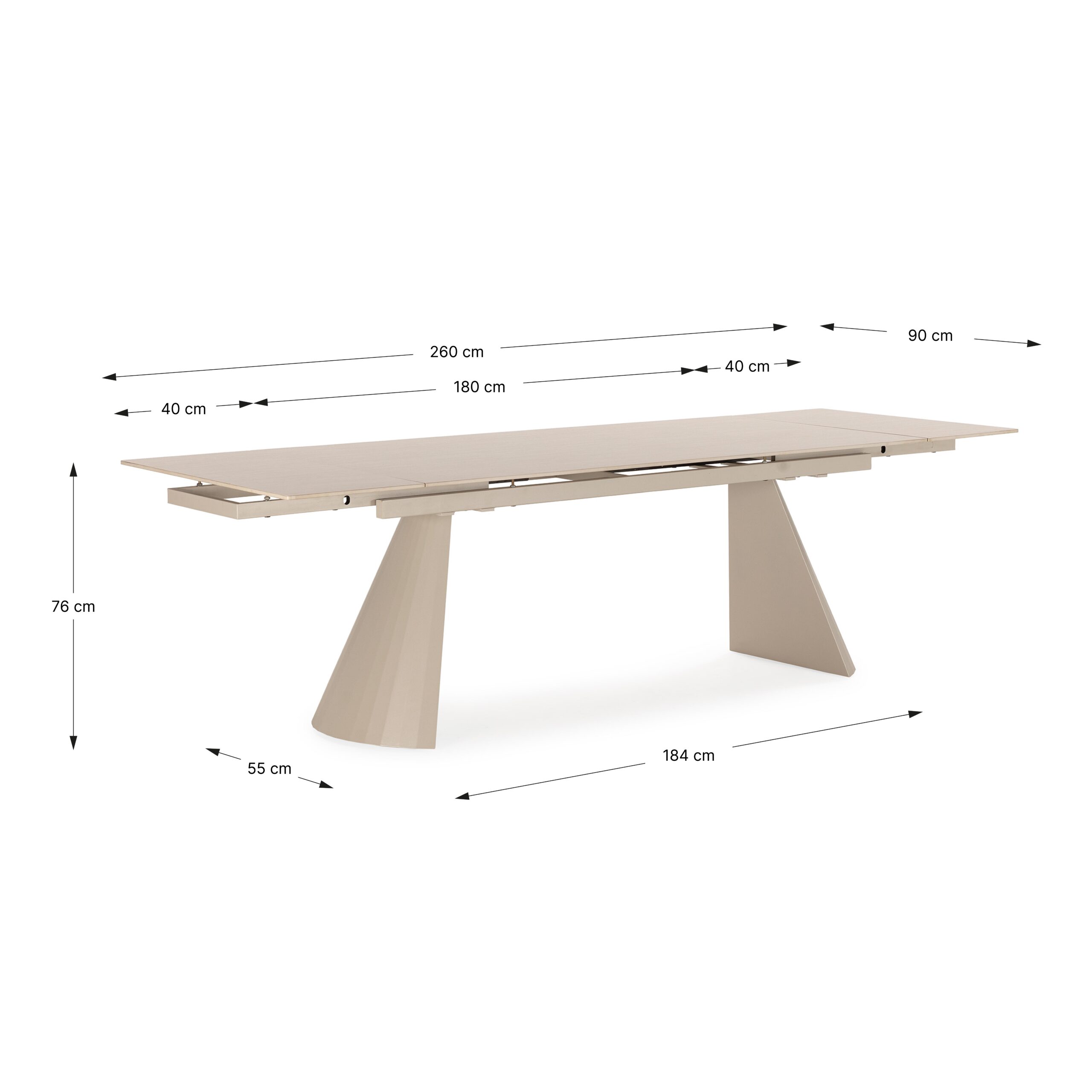 MESA RECT. EXT. PRISCA 180/260CM TRAVERTINE PIE CR PIEDRA SINTERIZADA/METAL