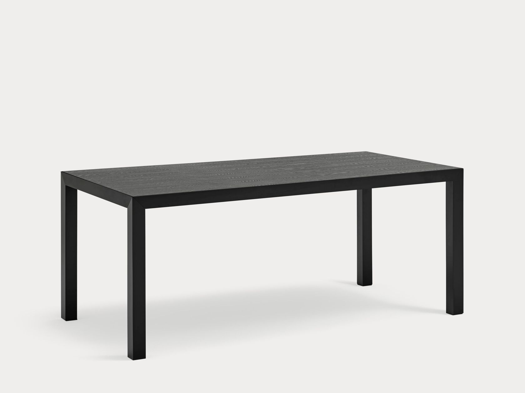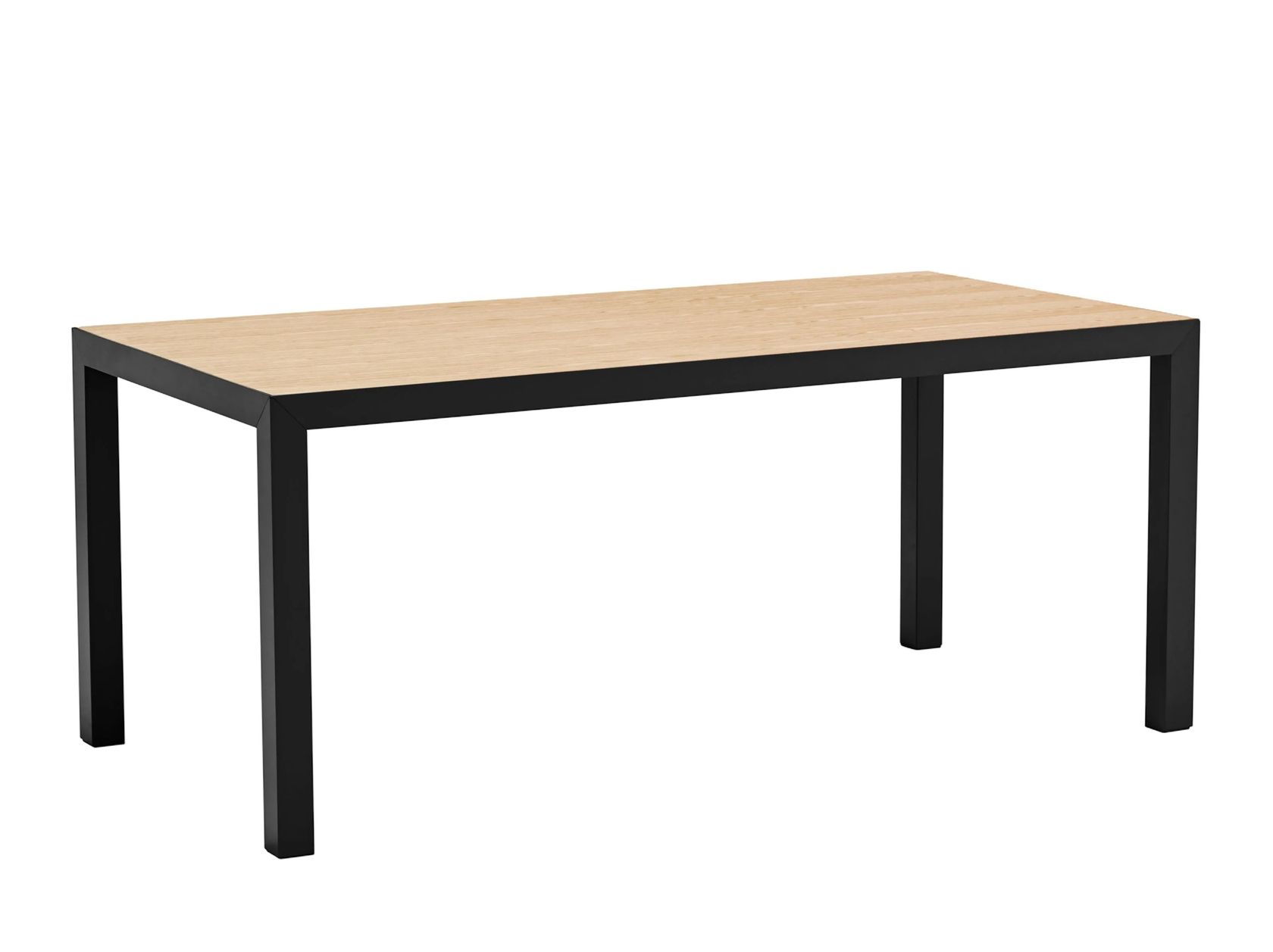 Alma is a rectangular oak wood table with a metal frame.