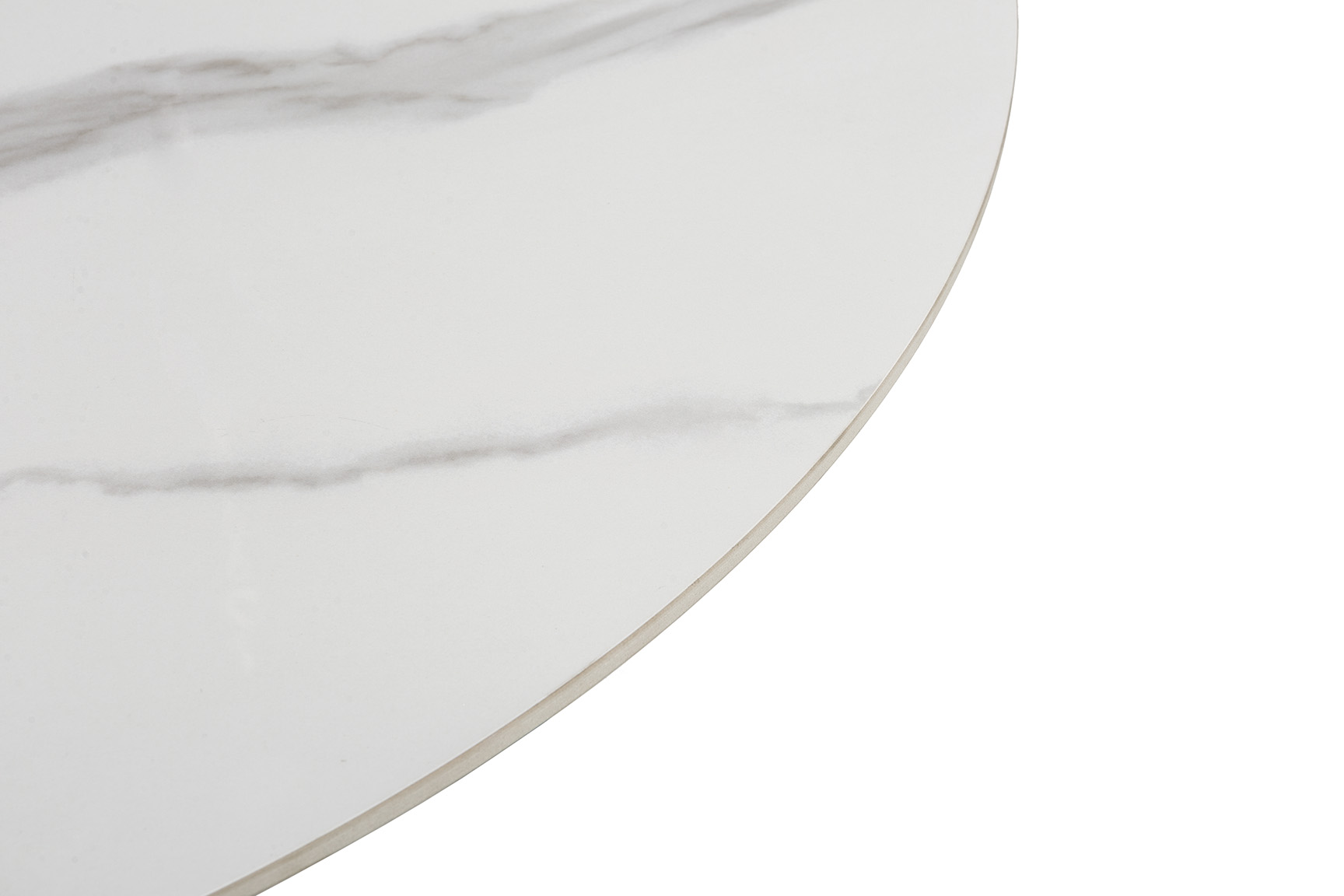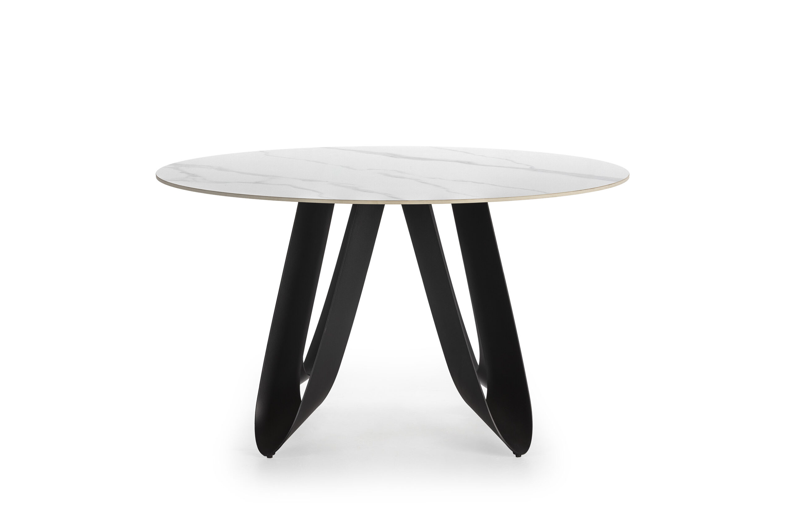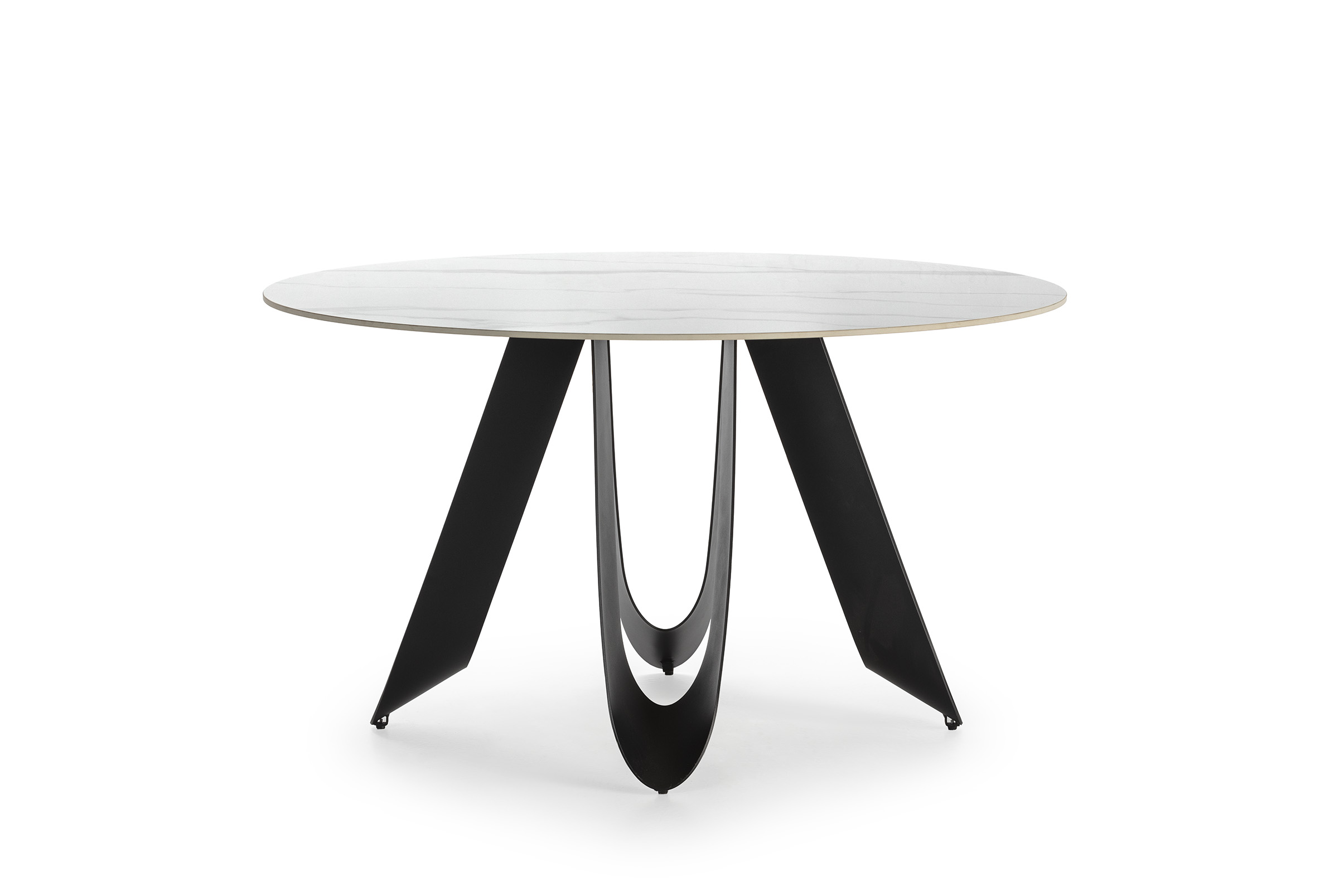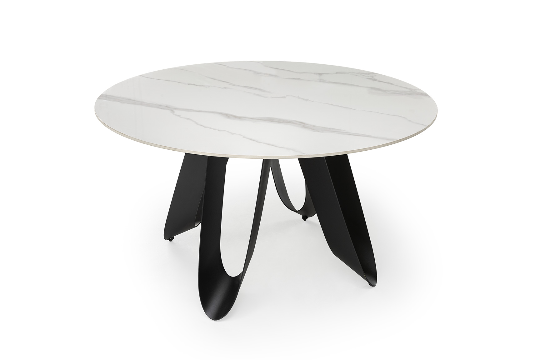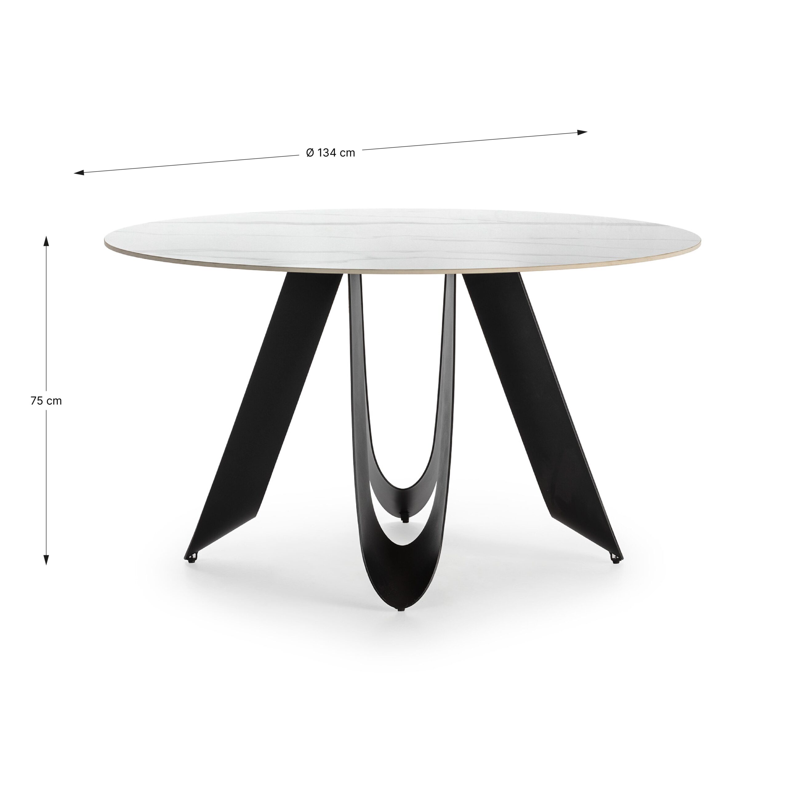 MESA REDONDA AILA 135CM CERÁMICA BLANCA PIE NEGRO PIEDRA SINTERIZADA/METAL