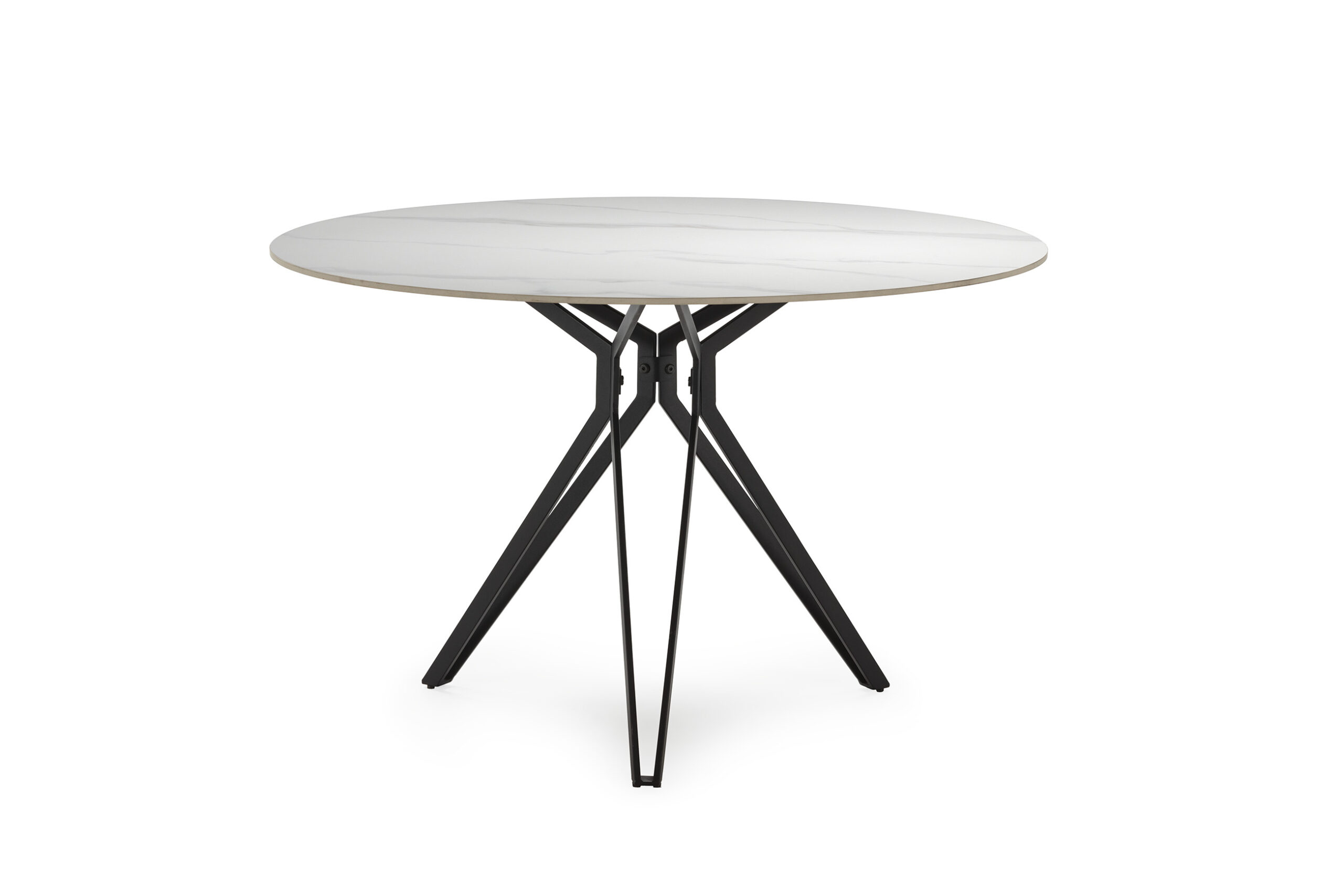 MESA REDONDA AINA 120CM BLANCO PATAS METAL NEGRO PIEDRA SINTERIZADA/METAL