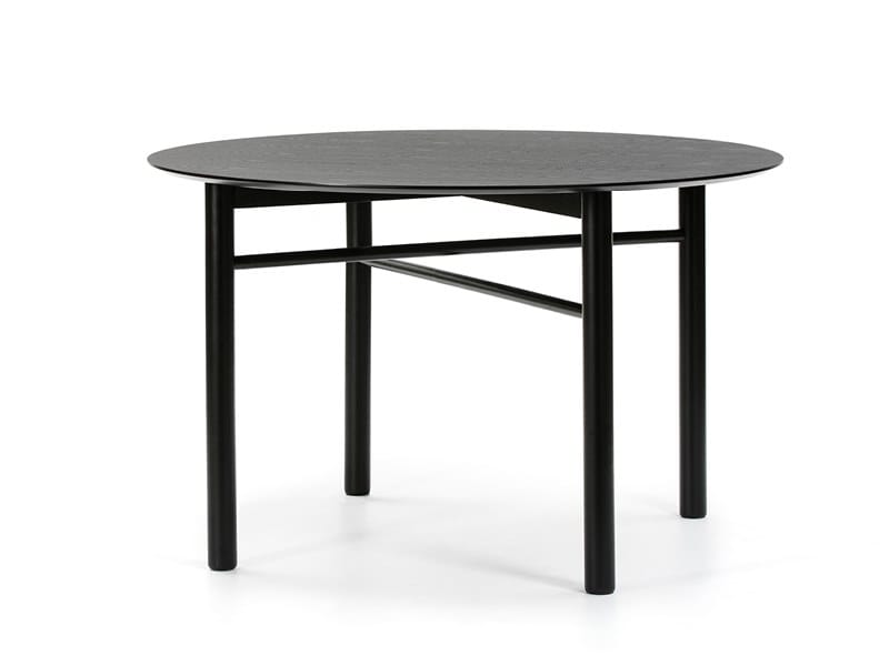 En la colección Junco se ha buscado generar una silueta estilizada, mínima y elegante. Resalta así el carácter sencillo de la colección, donde se pone en valor los procesos para su realización y la honestidad de la madera. La mesa ovalada Junco presenta 8 patas distribuidas en 2 grupos. Las patas están unidas de dos en dos mediante traveseras cilíndricas de madera, cruzándose sin llegar a cortar entre ellas. El sobre presenta un leve rebaje que lo aligera visualmente. Está chapado en fresno natural o tintado en negro y las patas son madera maciza con un redondeo en el inferior.