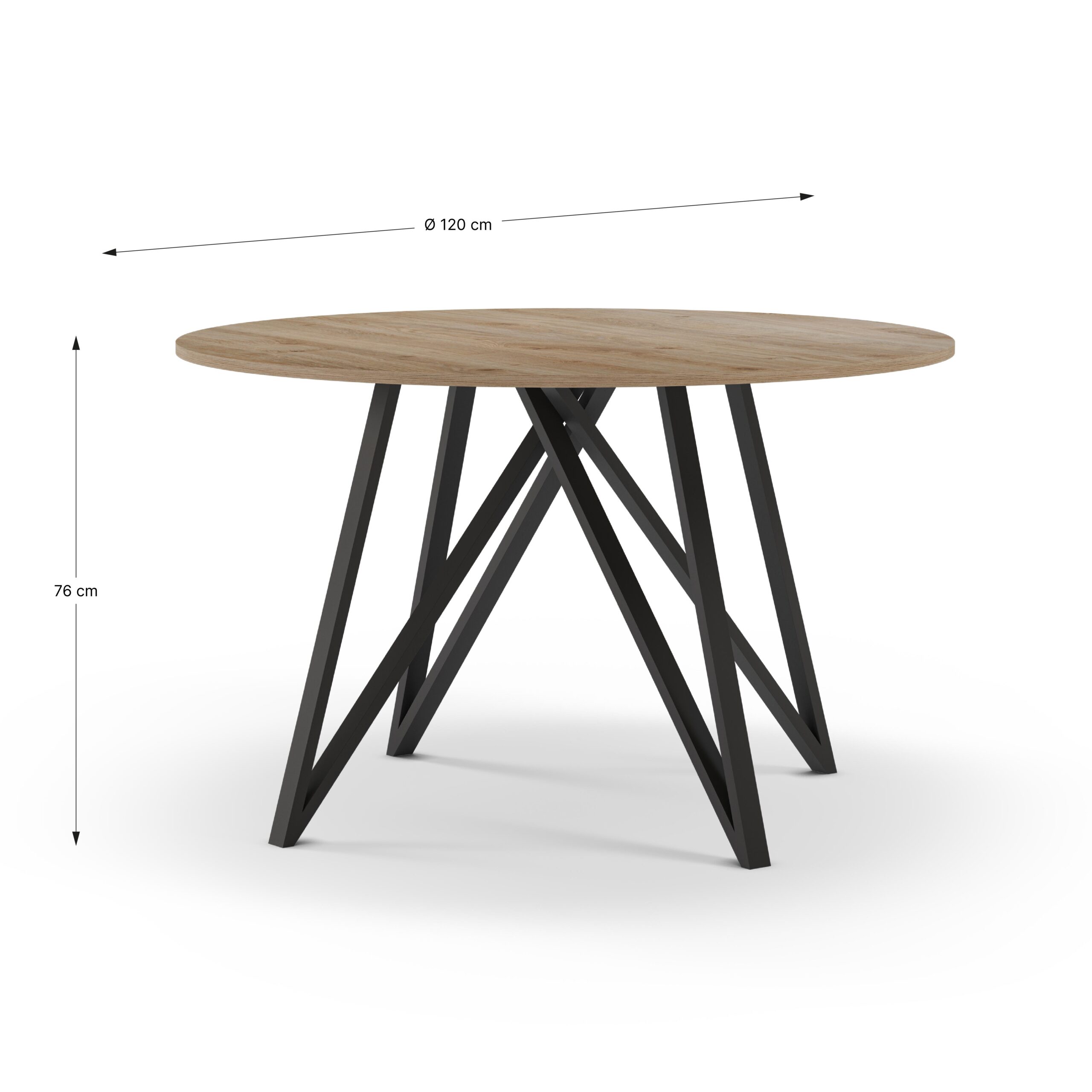 MESA REDONDA ILANA 120CM ROBLE CADIZ MELAMINA/METAL