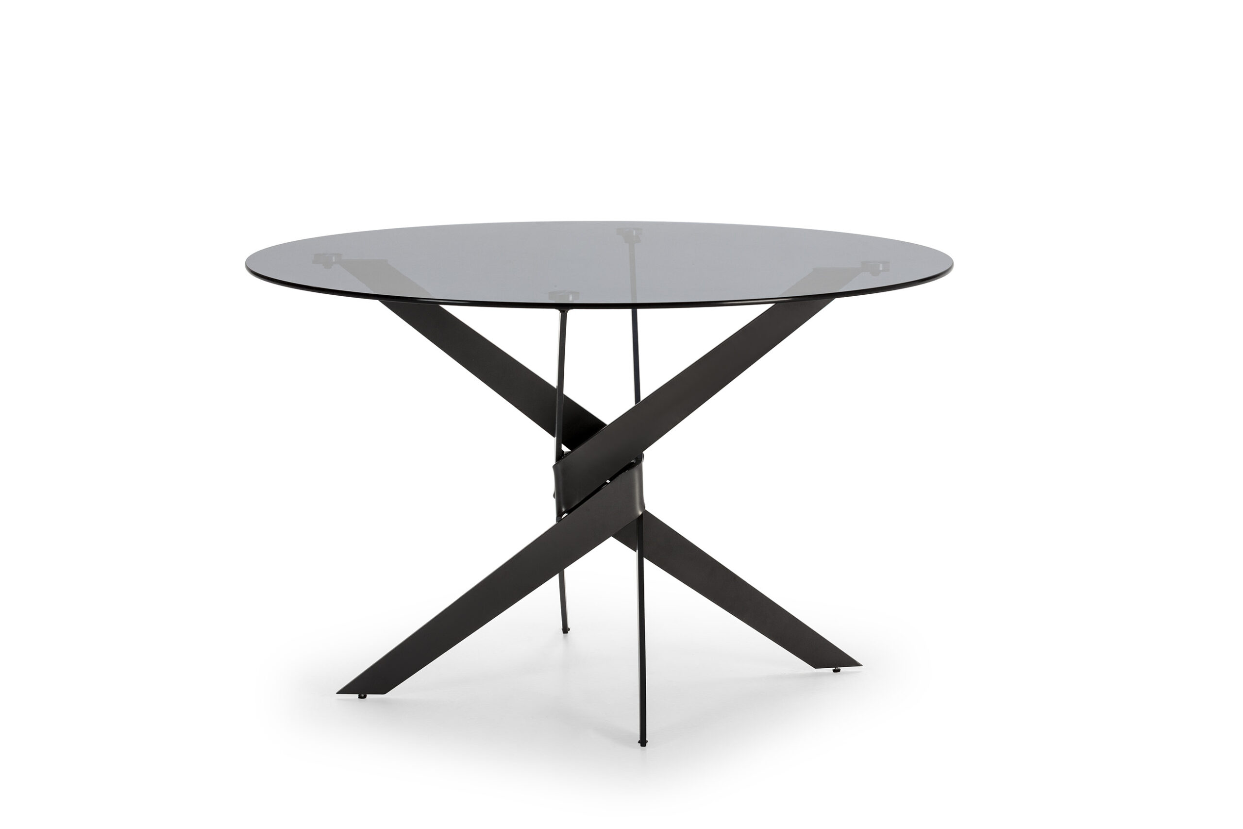MESA REDONDA JENNA 120CM GRIS/ PATA GRIS METAL/CRISTAL TEMPLADO